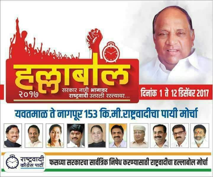 शीतकालीन अधिवेशन के पहले ही दिन सरकार को घेरने के लिए कांग्रेस और राष्ट्रवादी कांग्रेस दल संयुक्त मोर्चा निकालने जा रहे है। इस मोर्चे की कमान खुद एनसीपी अध्यक्ष शरद पवार के हाथों में होगी। नागपुर में विधानभवन पर निकाले जाने वाले इस मोर्चे से पहले दोनों दल दिंडी यात्रा भी निकलेंगे। कांग्रेस जहाँ वर्धा से तो राष्ट्रवादी यवतमाल से अपनी दिंडी यात्रा लेकर विधानभवन में कूच करेगी।