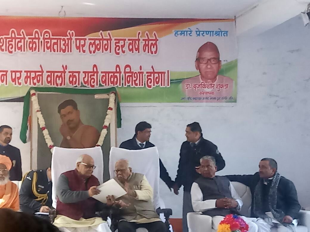 सूचना विभाग उन्नाव द्वारा जारी प्रेस विज्ञप्ति के अनुसार अमर शहीद चंद्र शेखर आजाद की 112 वीं जयंती पर आयोजित तीन दिवसीय समारोह के मुख्य अतिथि माननीय राजपाल उत्तर प्रदेश श्री राम नाइक जी एवं समारोह में होने वाले कार्यक्रमों की अध्यक्षता करने वाले माननीय विधानसभा अध्यक्ष श्री हृदय नारायण दीक्षित जी द्वारा आज आजाद जन्म स्थली बदरका उन्नाव में शहीद ए चंद्रशेखर आजाद की प्रतिमा पर माल्यार्पण किया गया। तत्पश्चात आयोजित जनसभा को संबोधित करते हुए कहा उन्नाव के पावन भूमि पर बड़े-बड़े साहित्यकार ,स्वतंत्रता संग्राम सेनानी एवं कलम तलवार के धनी उन्नाव की भूमि को प्रणाम।