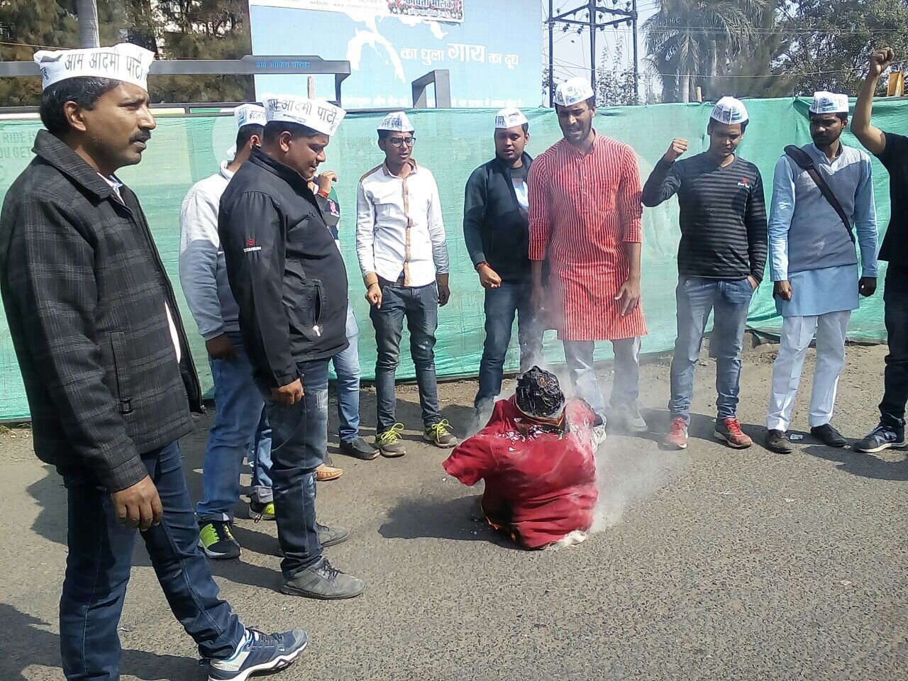 गत कई सालों से अपने हक़ के लिए संघर्ष कर रहे अतिथि शिक्षक एवं अन्य अध्यापकों ने कल दोपहर में अनूठा विरोध प्रदर्शन करते हुए अपना सिर मुंडवा लिया था, जिसमें बड़ी संख्या में महिलाओं ने भी अपना सिर मुंडवाया और इसके बाद रात में पिछले 1 महीने से अपनी 13 सूत्रीय जायज मांगों के लिए संघर्ष कर रहे दृष्टिहीन युवाओं को कल रात उनके आमरण अनशन के तीसरे दिन पुलिस द्वारा बलपूर्वक गिरफ्तार कर लिया गया था। शिवराज सरकार के इस कायरतापूर्ण व संवेदनहीन कदम और अध्यापकों के प्रति गहरी संवेदनहीनता के खिलफ विरोध प्रदर्शन करते हुए आप युवा शक्ति भोपाल द्वारा बोर्ड ऑफिस चौराहे पर मुख्यमंत्री शिवराज सिंह चौहान का पुतला फूंका गया ।