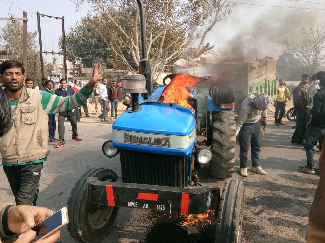 भिंड के सुभाष तिराह पर एक बालक जिसका नाम वन्स पुत्र उमेश शर्मा 2 वर्ष निवासी शिवजी नगर को एक ट्रैक्टर वाले ने कुचल दिया जो की खंडे से भरा हुआ था, जिससे घटनास्थल पर ही बच्चे की मौत हो गई। इसके बाद आक्रोशित भीड़ ने ट्रैक्टर के चालक को रोड पर पटक-पटक कर बेरहमी से पीटा और मौके पर आई पुलिस को भी खदेड़ दिया। मौके पर पहुंचे थाना प्रभारी शेर सिंह से लोगों ने धक्का मुक्की की और एस.आई को थप्पड़ मार दी। पुलिस बल ने लोगों को समझने की भी कोशिश की परंतु जनता ने एक न सुनी और पुलिस पर पथराव कर दिया। इस बात की सुचना एसपी व कलेक्टर को मिली तो तत्काल दोनों लोग घटनास्थल पर पहुंचे। इसके अलावा मौके पर संजू जाटव जनपद अध्यक्ष के पति गजराज सिंह भी पहुंचे।