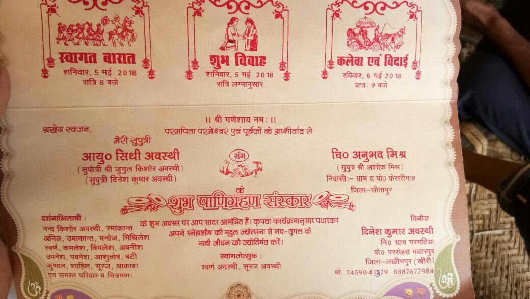 उत्तर प्रदेश के जनपद लखीमपुर खीरी के थाना क्षेत्र मितौली के ग्राम गरगटिया निवासी दिनेश कुमार अवस्थी की पुत्री सिधी अवस्थी का विवाह केसरीगंज सीतापुर निवासी अशोक मिश्रा के पुत्र अनुभव मिश्रा के साथ होना तय हुआ था और 5 मई दिन शनिवार को बारात गरगटिया आनी थी, लेकिन वर पक्ष बारात लेकर नहीं आया और कन्या पक्ष के लोग बारात आने इंतजार ही करते रह गए। बारात न आने से कन्या के हाथों में हसरतों की मेंहदी लगी की लगी रह गयी।
