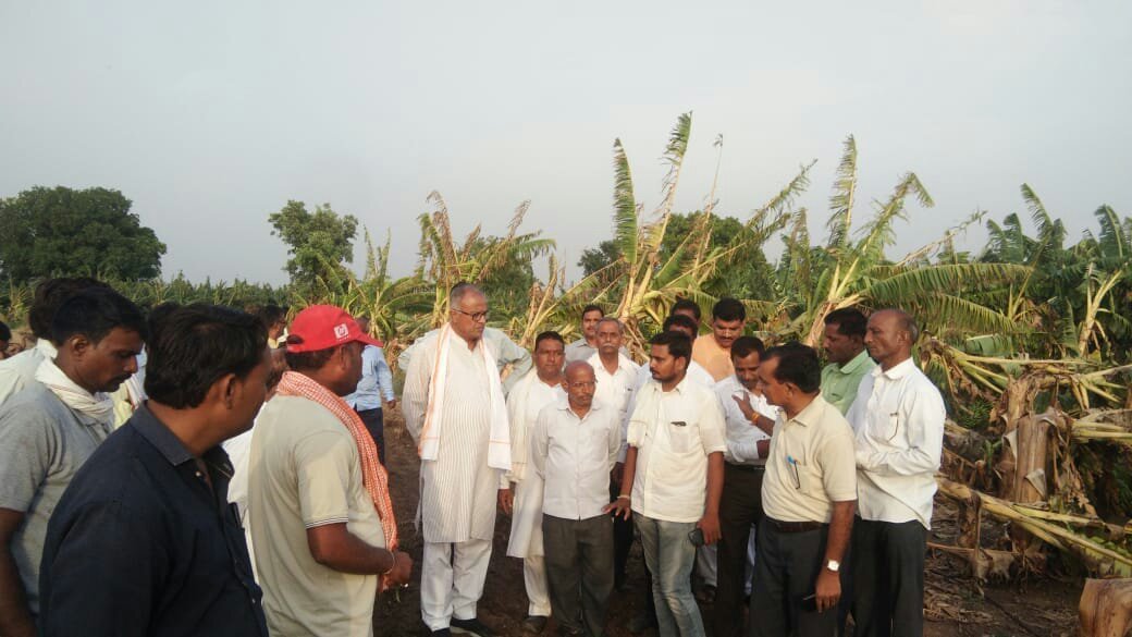 गत दिनों बुरहानपुर जिले के विभिन्न ग्रामों में अचानक आए आँधी तूफान एवं वर्षा से लगभग 9 ग्रामों में भयंकर नुकसान होने के समाचार हैं। जानकारी के अनुसार किसानों की लाखों रुपये की केली का नुकसान होना बताया गया है। इस नुकसान की जानकारी मिलते ही सांसद नंद कुमार सिंह चौहान ने तत्काल जिले के कलेक्टर को मोबाइल पर चर्चा कर तकाल निरीक्षण के निर्देश दिए थे,उसके उपरांत शासकीय अमले ने निरीक्षण कर सर्वे किया।आज रविवार को सांसद नंद कुमार सिंह चौहान ने स्वयं ग्राम नसीराबाद में जाकर किसानों के नुकसान का जाएज़ा लिया एवं किसानों को हर संभव मदद करने का आश्वासन दिया ।उन्होंने यह भी आश्वस्त किया कि वह मुख्य मंत्री श्री शिवराज सिंह चौहान से इस नुकसान के संबंध में बात करेंगे।
