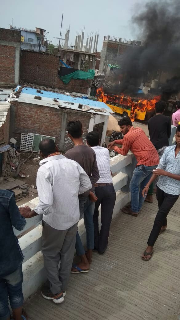 मिली जानकारी के अनुसार कुलसुम 6 वर्ष पुत्री भोलू आरिफ नगर में ओवरब्रिज के नीचे सड़क किनारे खेल रही थी गुरुवार दोपहर लगभग 2:30 बजे सागर पब्लिक स्कूल गांधी नगर की बस बच्चों को छोड़ने आई थी। बताया जा रहा है कि बस ने टर्न लिया उस समय बच्ची बस की चपेट में आ गई। जिससे उसकी मौके पर ही दर्दनांक मौत हो गई। हादसे के बाद बस का ड्राइवर मौके से फरार हो गया। वहीं घटना से नाराज लोगों ने बस में तोड़फोड़ की फिर उसको आग के हवाले कर दिया। स्थानीय लोगों का कहना है कि तंग सड़कों के कारण अक्सर हादसे होते रहते हैं। शासन प्रशासन को चाहिए कि तंग सड़कों पर बड़ी बसों को नहीं जाने दिया जाये।