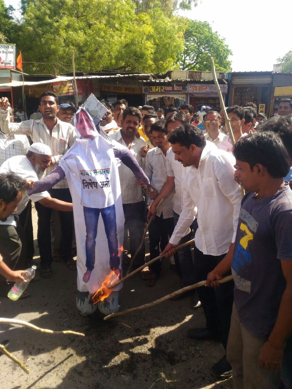 इसी प्रकार बुलढाणा तहसिल के ग्राम धाड़ में कांग्रेस कार्यकर्ताओं ने विधायक हर्षवर्धन सपकाल के निलंबन का निषेध दर्शाते हुए मुख्यमन्त्री देवेन्द्र फड़नवीस का प्रतिकातमक पुतले को आग लगाते हुए किसान विरोधी भाजप सरकार के खिलाफ जमकर नारेबाजी कर अपना रोष व्यक्त किया। इस समय धाड़ के सरपंच रिज़वान सौदागर, मो.शफी, महेंद्र बोर्डे, प्रभाकर वाघ, दिलीप खांडवे, शिवाजी देशमुख, सुनील चांदा, अरविंद गुजर, मुश्ताक सौदागर सहित बड़ी संख्या में कार्यकर्ता शामिल थे। इसी तरह मोताला में भी कांग्रेस की तरफ से राज्य सरकार के विरोध में नारेबाजी की गई और तहसील प्रशासन को ज्ञापन देते हुए विधायकों का निलंबन वापस लेने की मांग की गई।