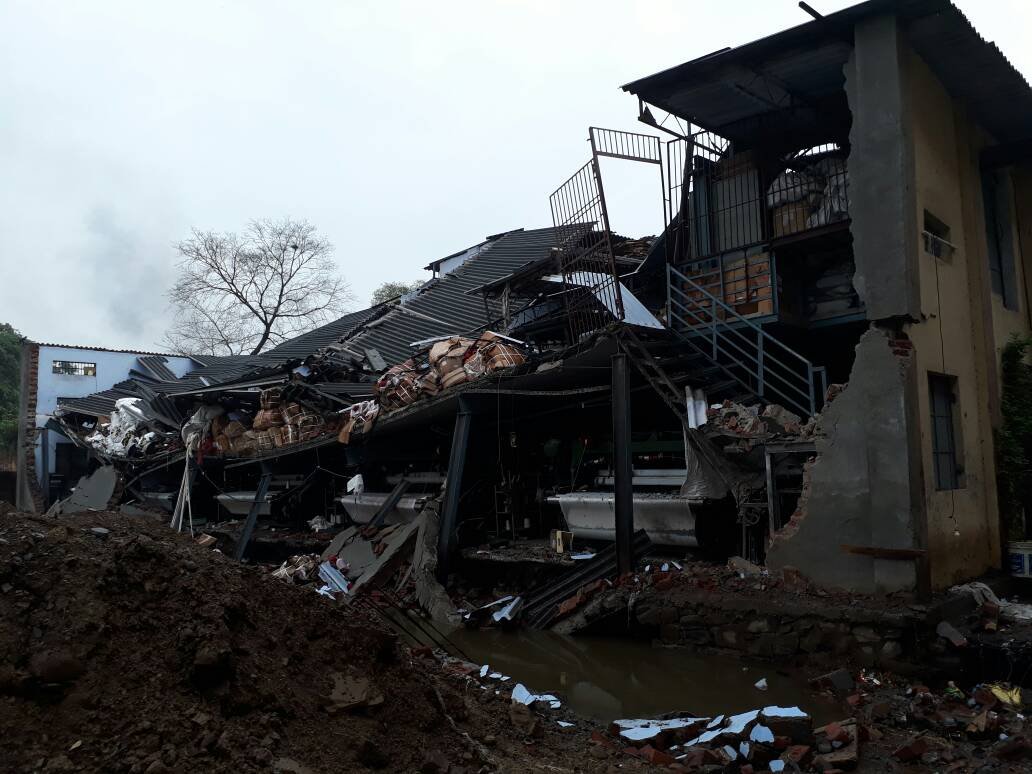 भिवंडी में शुक्रवार की रात को लगभग दो घंटों तक हुई अचाानक मुसलाधार बारिश की वजह से एक पावरलूम कारखाना तल सहित एक महले की इमारत में संचालित था शनिवार की सुबह 4 बजे ढह गया ,जिसमें लाखों रूपये का आर्थिक नुकसान हुआ है लेकिन किसी प्रकार की कोई जनहानि नहीं हुई है।