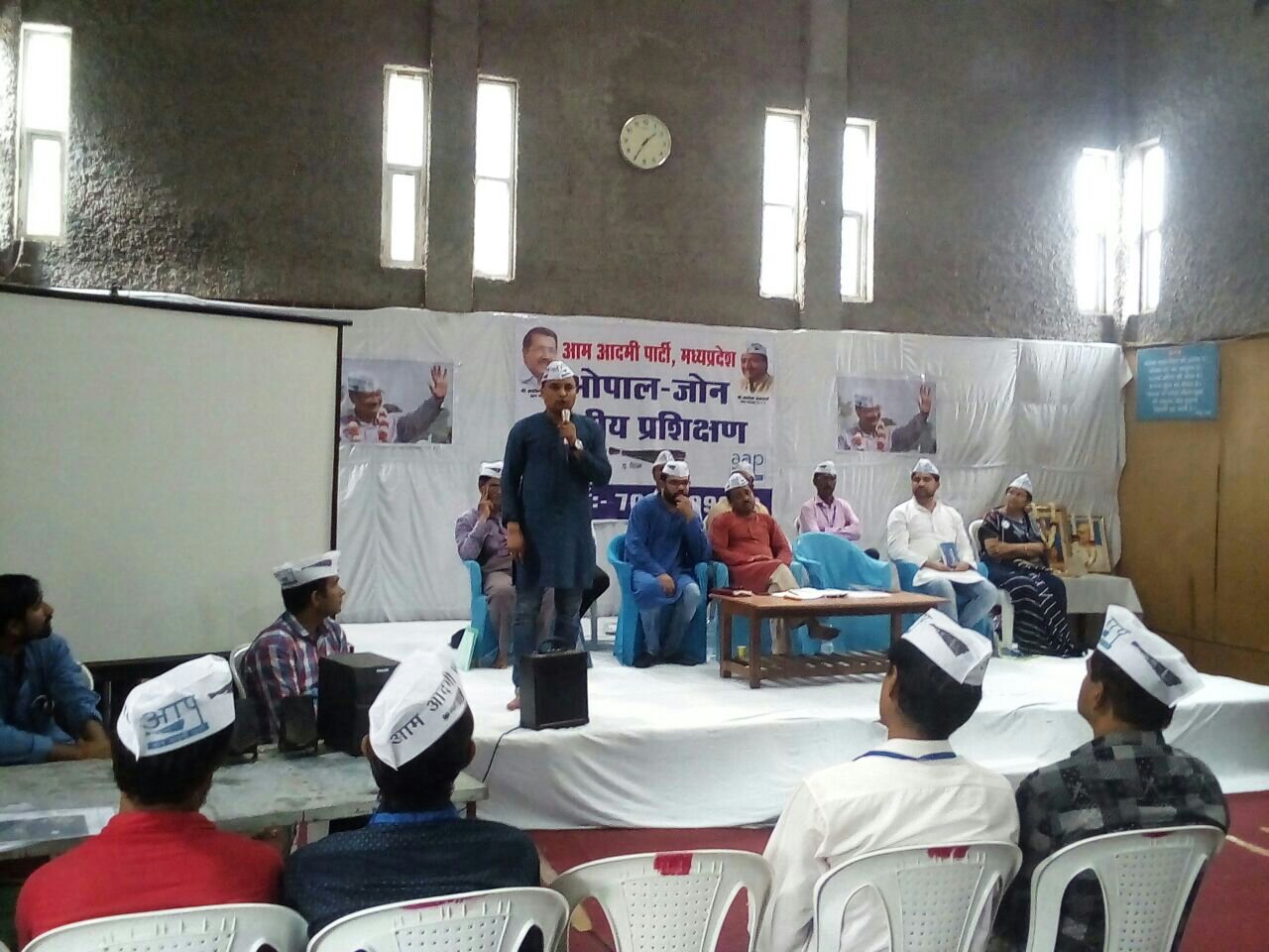 आम आदमी पार्टी भोपाल जोन के विधानसभा प्रभारियों का प्रशिक्षण शिविर सोमवार को आयोजित किया गया। यह सम्मेलन सुबह 10 बजे गांधी भवन, पॉलिटेक्निक चौराह, भोपाल में आयोजित किया गया। इस प्रशिक्षण में कार्यकर्ताओं को राजनीतिक कार्यक्रम, कोष प्रबंधन, संगठन विस्तार जैसे महत्वपूर्ण विषयों पर प्रशिक्षण दिया गया। जिसमें मुख्य अतिथि के रूप में प्रदेश संयोजक श्री आलोक अग्रवाल भी उपस्थित थे। ​आम आदमी पार्टी भोपाल जोन के विधानसभा प्रभारियों का प्रशिक्षण शिविर संपन्न | New India Timesप्रदेश संयोजक श्री आलोक अग्रवाल संगठन से जुड़े अपने अनुभवों को पार्टी के पदाधिकारियों एव कार्यकर्ताओ के साथ साझा किया और आने वाले 2018 के चुनाव के बारे में रोड मैप पर चर्चा हुई। इसके अतरिक्त संगठन सचिव श्री पंकज सिंह ने प्रदेश की समस्याओं व संगठन व प्रदेश सचिव दुष्यंत दांगी ने मध्य प्रदेश के सामाजिक विषयों पर अपनी बात रखी।