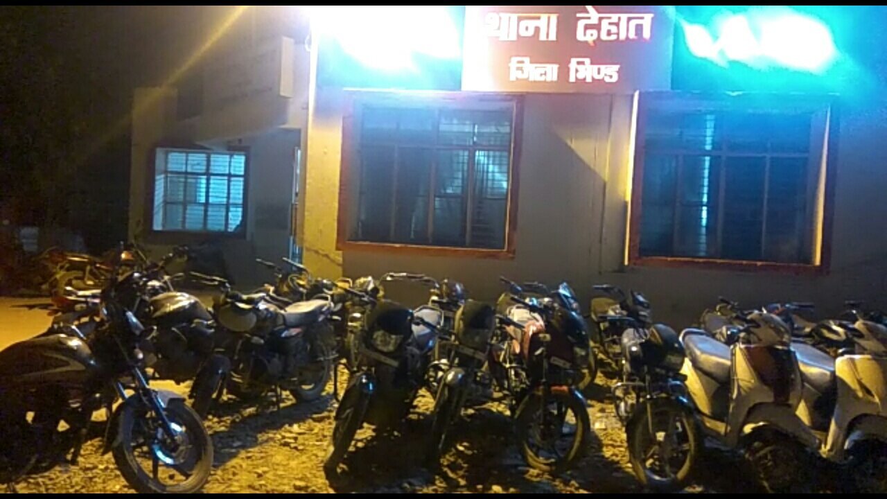 अविनाश द्विवेदी, भिंड ( मप्र ), NIT; ​अन्तर्राजीय वाहन चोर गिरोह के चार सदस्य गिरफ्तार, 22 बाइक्स, 1 ट्रैक्टर, 3 ट्रॉली, 1 बोलेरो, 1 आटो रिक्शा बरामद | New India Timesभिण्ड की देहात थाना पुलिस ने एक अन्तर्राजीय वाहन चोर गिरोह को पकड़ने में बड़ी सफलता प्राप्त की है। पकड़े गए चार कुख्यात चोरों की निशानदेहीरपर पुलिस ने चोरी की 22 बाइक्स ,1 ट्रैक्टर, 3 ट्रॉली,1 बोलेरो कार व 1ऑटो रिक्शा बरामद किया है।​अन्तर्राजीय वाहन चोर गिरोह के चार सदस्य गिरफ्तार, 22 बाइक्स, 1 ट्रैक्टर, 3 ट्रॉली, 1 बोलेरो, 1 आटो रिक्शा बरामद | New India Timesइस मामले में चौंकाने वाली बात यह है कि चोरी के मामले में देहात थाना के दो आरक्षक अजय शर्मा व विजय जैन के नाम भी चोरों का साथ देने में शामिल होने की खबर सामने आई है।जबकि आरोप है कि पुलिस आफिसर उनको बचाने की कोशिश कर रहे हैं, हालांकि दोनों आरक्षकों को एसपी अनिल सिंह कुशवाह ने बिना कोई ठोस कार्यवाही के लाइन अटैच कर दिया है।