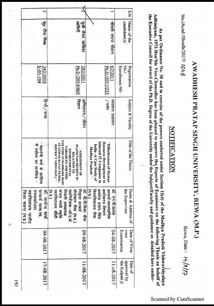 श्रीमती सैय्यदा सबिहका आब्दी पुत्री सैय्यद शहनशाह हैदर आब्दी को अवध प्रताप सिंह विश्वविद्यालय रीवां (म.प्र.) ने “डाॅक्टर ओफ फिलॉसफी” उपाधि से विभूषित किया है।