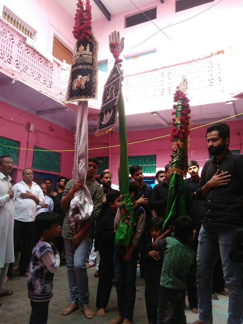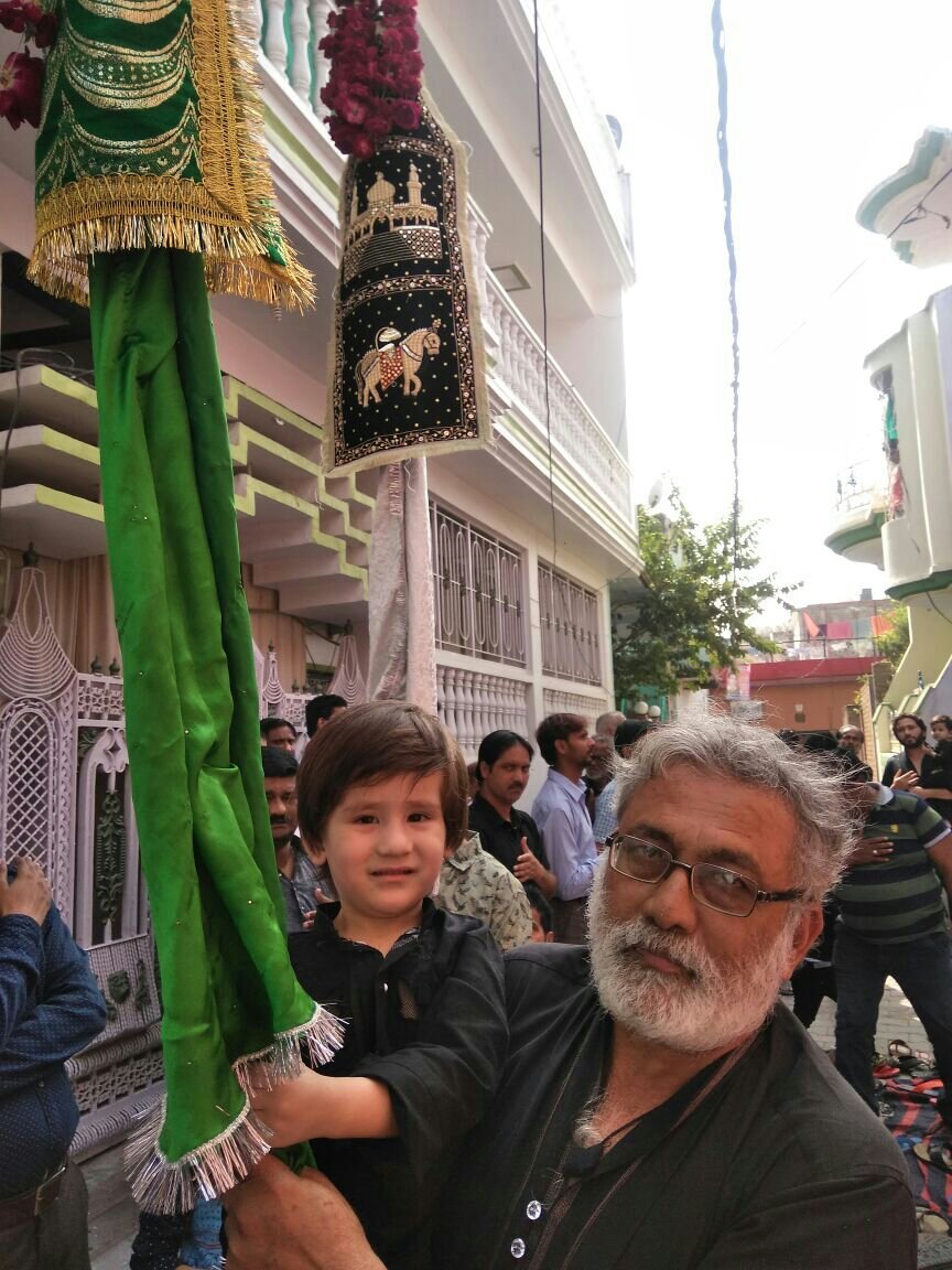 नोट: नन्हें अलमदार “अज़फर” के हाथ में हज़रत अब्बास का “अलम” इसलिये दिया गया ताकि हज़रत अब्बास की तरह ही बच्चा मुल्क और क़ौम का वफादर बने।