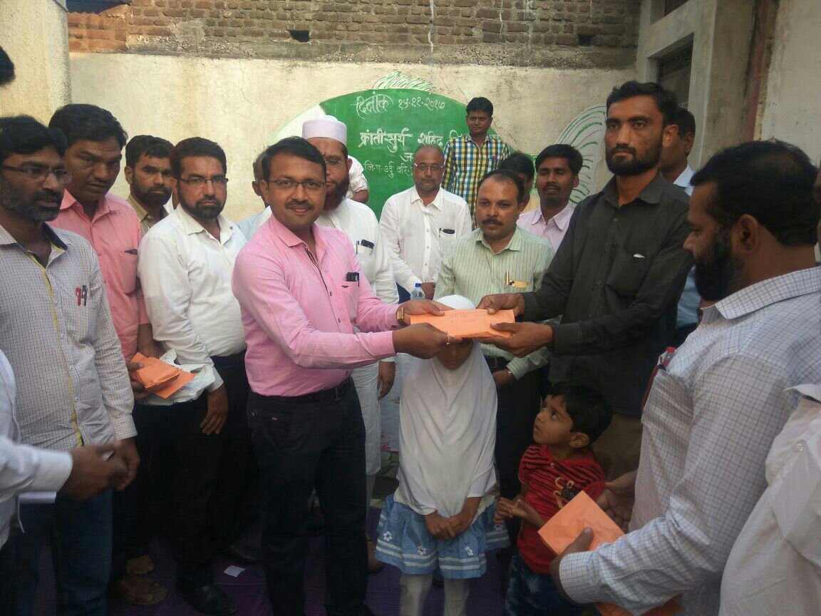 इस पवित्र सोच की अमल बजावणी के साथ विगत 17 नवंबर को तीनों जिलों से कुल 7 लाख 48 हजार रुपय की निधी जमा हुई, जिसमें अकोला से 4 लाख 42 हजार, बुलढाणा से 2लाख 32 हजार, वाशिम से 74 हजार रुपय निधी का समावेश है, जो दोनों मृतक शिक्षकों के परिवार को दी गई।​जि.प उर्दू शिक्षकों द्वारा मृतक शिक्षकों के परीवार को दी गई कारीब 7 लाख की आर्थिक मदद | New India Timesइसी के चलते ग्राम माना ता.मुर्तीजापूर में एक कार्यक्रम का आयोजन किया गया, जिसके अध्यक्ष के मुफ्ती अशफाक कासमी थे,   इस मौके पर प्रशांत दिग्रसकर, शिक्षणाधिकारी( प्राथ.) जि.प. अकोला, श्याम राऊत ग.शि.अ.पं.स.मूर्तीजापूर, विनोद मानकर, जाधव, बिरमवार, सर्व  (वि.अ.शि)आदि प्रमुख रूप से उपस्थित थे। प्रास्ताविक जव्वाद हुसैन सर ने किया तथा प्रशांत दिग्रसकर शिक्षणाधिकारी( प्राथ.) जि.प. ने अपने विचार व्यक्त किए तथा इस सराहनिय कार्य का गौरव तथा अभिनंदन किया। मुफ्ती अशफाक कासमी ने अपने अध्यक्षीय भाषण में तीनों जिले के उर्दू शिक्षकों का अभिनंदनकर  किए गए कार्य को प्रेरणा तथा महान बताय तथा पवित्र कुरान का संदर्भ देकर बताया की मानवता की सेवा करने वाले व्यक्ति ही परमेश्वर के दृष्‍टी से सही मनुष्य माना जाता है। इसके बाद जमा इस निधी के दो समान हिस्से कर यांनी तीन लाख चौर्‍याहत्तर हजार (3,74,000/-) रूपये मृतकों के परिवार को मान्यवर के हाथों प्रदान किया गया। इस कार्यक्रम में ग्राम स्थल के प्रतिष्ठीत नागरिक तथा बाहर से आए हुए उर्दू शिक्षक बडी संख्या में उपस्थित थे। कार्यक्रम का सुत्रसंचालन डॉ.नासिरोद्दीन अन्सार ने किया।