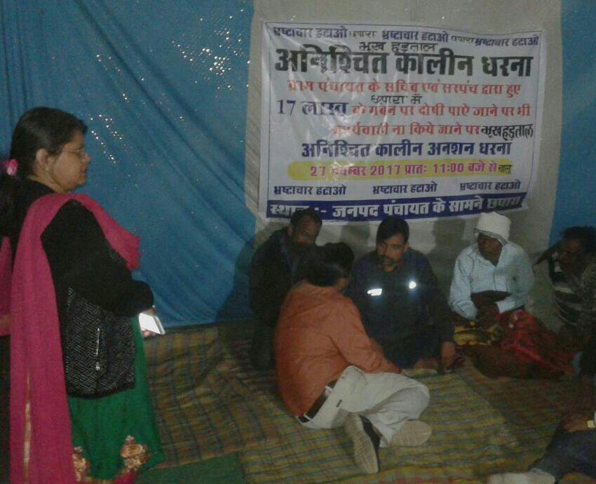 छपारा जनपद कार्यालय के सामने धरने पर बैठे हुए अनशनकारियों ने कहा है की जब तक दोषी सरपंच और सचिव के ऊपर कोई कार्यवाही नहीं हो जाती है तब तक वे आमरण अनशन और धरने पर बैठे रहेंगे। आज देर शाम लखनादौन SDM तथा छपारा तहसीलदार और जनपद पंचायत की सीईओ धरना स्थल पर पहुंचे थे और उन्होंने शासन प्रशासन की ओर से अपनी बात अनशनकारियों के समक्ष रख दी है लेकिन अनशनकारी इस बात पर अड़े हुए हैं कि जब तक छपारा ग्राम पंचायत की सरपंच श्रीमती पूनम संयम और सचिव प्रकाश भलावी के ऊपर कोई ठोस कार्यवाही नहीं हो जाती है तब तक वे भूख हड़ताल और धरना प्रदर्शन पर डटे रहेंगे। बरहाल 60 घंटे बाद और भूख हड़ताल के तीसरे दिन अनशनकारियों की सेहत बिगड़ती जा रही है। अब देखना यह है कि शासन प्रशासन कब और कैसी कार्यवाही तय कर पाते हैं?