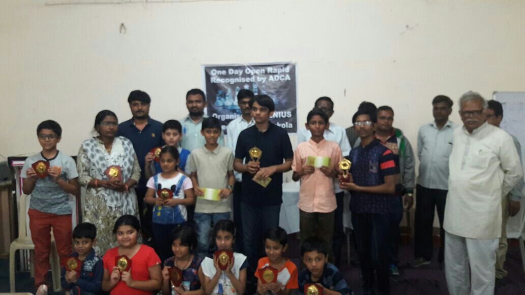 अकोला बुद्धिबल असो.वएवं जीनियस चेस अकेडमी के संयुक्त विद्यमान से स्थानीय आईएमए सभागृह में रविवार को संपन्न हुए विदर्भ स्तरीय बुद्धिबल स्पर्धा में प्रेम यादव स्पर्ध विजेता एवं खुश दोशीको उपविजेता घोषित किया गया। विजेता स्पर्धकों को नकद राशि पुरस्कार मान्यवरों के हाथों दिया गया।