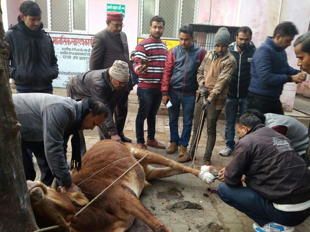 पत्रकार फ़राज़ अन्सारी, विनोद त्रिपाठी व सलमान असलम की सूचना पर त्वरित एक्शन लेते हुए सचल पशु चिकित्सा दस्ता जिला चिकित्सालय के पास पहुंचा और अस्पताल परिसर के अंदर व बाहर बीमार व घायल जानवरों की चिकित्सा सेवा की।​बेजुबानों की सेवा की मिसाल बनी पशु चिकित्सा सचल टीम, घायल जनवरों की चिकित्सा कर योगी सरकार के सपनों को साकार कर रहे हैं पशु चिकित्सक; समाज सेवी व पशु प्रेमी पप्पू किदवई का अरसे से रहा है सक्रिय योगदान | New India Timesबहराइच जिला चिकित्सालय परिसर में घायल व बीमार गुमन्तु जानवरों के इलाज के लिए पशु चिकित्सा सचल टीम ने अभियान चला कर आधा दर्जन घायल व बीमार बे जुबान जानवरों का इलाज किया।।वर्षो से पैर सड़ जाने के कारण चलने में असमर्थ दो छुट्टा सांडो व् बछड़े समेत आधा दर्जन बेजुबानो की मरहम पट्टी कर उन्हें इंजेक्शन लगाया।