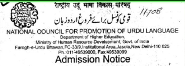 मध्यप्रदेश उर्दू अकादमी की निगरानी में कौमी काउन्सिल बराए फरोग-ए-उर्दू जबान के एक वर्षीय उर्दू डिप्लोमा कोर्स में प्रवेश प्रारम्भ हो चुके हैं। उर्दू भाषा सीखने के इच्छुक व्यक्ति इस कोर्स में प्रवेश प्राप्त कर सकते हैं। आयु सीमा एवं शैक्षणिक योग्यता की कोई शर्त नहीं है। हिन्दी या अंग्रेजी का ज्ञान होना आवश्यक है। पंजीयन शुल्क 200 रूपये निर्धारित है। इसके अलावा कोई शुल्क देय नहीं है। प्रवेश पत्र प्राप्त करने की अंतिम तिथि जनवरी, 2018 है।