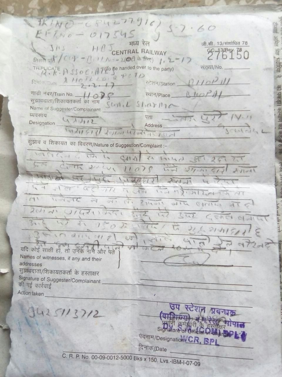 अनुज ओझा, ग्वालियर( मध्यप्रदेश ), NIT; ​​झेलम एक्सप्रेस के कैंटीन के शाकाहारी थाली में निकला मटन का टुकडा, कैंटीन और रेल प्रशासन पर लापरवाही का आरोप | New India Timesझेलम एक्सप्रेस से झाँसी से भोपाल जा रहे ग्वालियर के चेतकपुरी निवासी सुनील शर्मा ने ट्रेन में खाने का ऑडर दिया। वेटर जब खाना लेकर आया तो खाना खाते वक्त दाल में मटन का टुकड़ा निकला। ​झेलम एक्सप्रेस के कैंटीन के शाकाहारी थाली में निकला मटन का टुकडा, कैंटीन और रेल प्रशासन पर लापरवाही का आरोप | New India Timesजब इसकी शिकायत ट्रेन में चल रहे स्टाफ से की गई तो स्टाफ ने यात्री सुनील की कोई सुनवाई नही की व 150 रुपये खाने का चार्ज भी ले लिया गया। ​झेलम एक्सप्रेस के कैंटीन के शाकाहारी थाली में निकला मटन का टुकडा, कैंटीन और रेल प्रशासन पर लापरवाही का आरोप | New India Timesइसके बाद जब सुनील भोपाल पहुंचे तो स्टेशन पर स्टेशन प्रबंधक से लिखित शिकायत की। देखने वाली बात है कि इतनी बड़ी लापरवाई कैसे हो रही है? इससे पहले कई यात्री भी खाने की शिकायत कर चुके हैं लेकिन रेलवे अधिकारी इस ओर ध्यान नही दे रहे हैं।