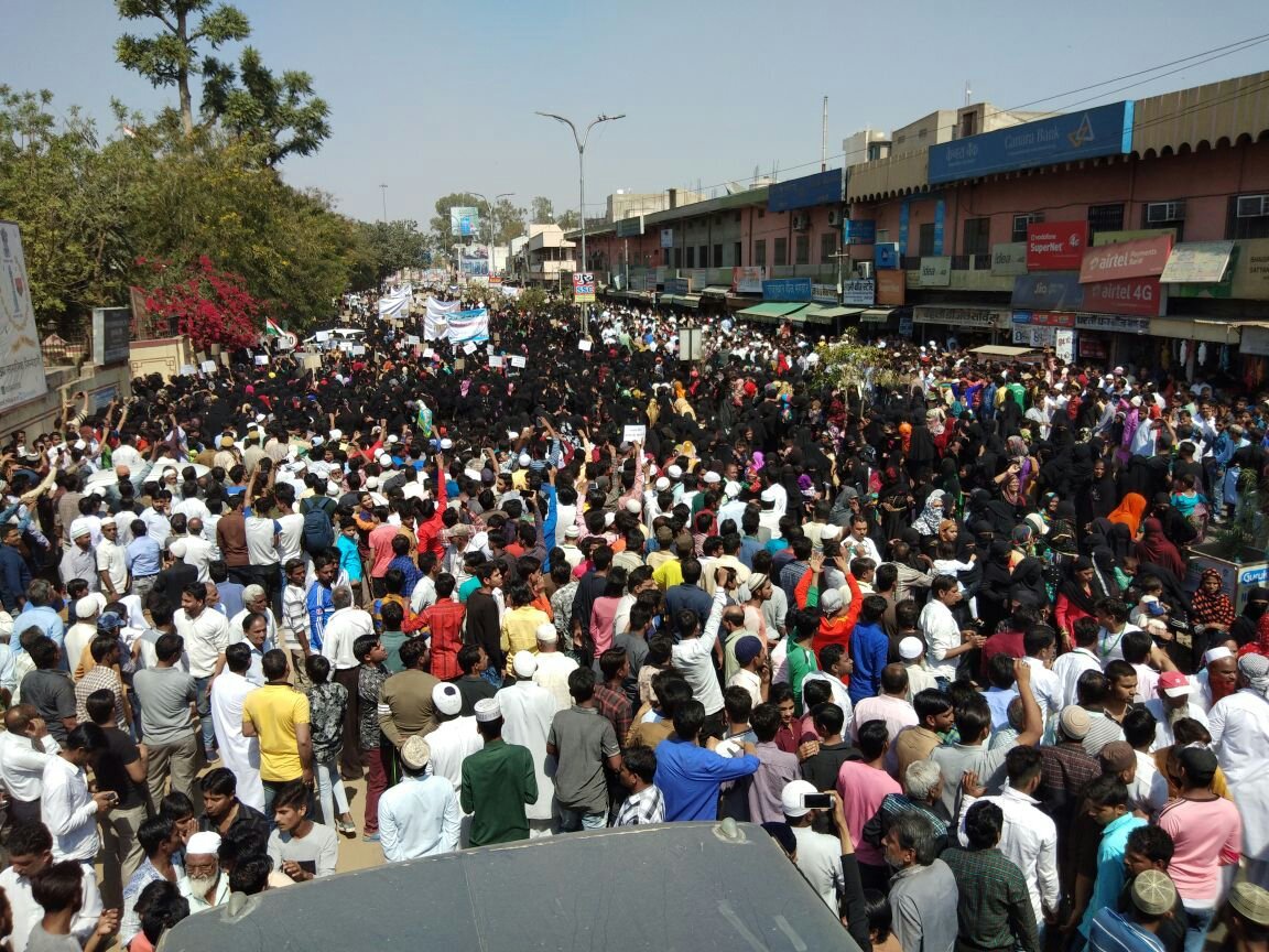 सोमवार सुबह से शहर की मुस्लिम बस्तियों से महिलाएं अपने घरों से अपने आप छोटे छोटे समुह में निकल कर ईदगाह चौक के अलावा बीसायतियान मोहल्ले के अल्लाह कुरेशीयान चौक में इकठ्ठा होने लगी थी। करीब साढे दस बजे ईदगाह चौक में जमा हजारों महिलाओं का जुलूस ऐक्सीलैंस स्कूल की बानी रुखसाना चौहान सहित अनेक शिक्षाओं व समाजी कारकुनों की अगुवाई में युवाओं की देखरेख में रवाना होकर जब जाट बजार पहुंचा तो उस अनुशासित जुलूस में बीसायतियान चौक व कुरेशियान चौक में जमा हुई महिलाओं का अलग अलग रास्ते से आया जुलूस भी ईदगाह से चले आ रहे जुलूस में शामिल होकर एक साथ कलेक्ट्रेट की तरफ चलते हुये काफी देर बाद कलेक्ट्रेट पहुंच कर सभा में परिवर्तित हो गया। जहां महिलाओं ने सभा को सम्बोधित करते हुये शरीयत में मुदाखलत करने पर सरकार को ललकाराते हुये उक्त बिल को वापस लेने की पुरजोर शब्दों में मांग की। उसके पश्चात रुखसाना चौहान सहित अन्य पांच महिलाओं ने अतिरिक्त जिलासीकर मे हजारो मुस्लिम महिलाओ ने मौन जूलूस निकालकर तीन तलाक बिल पर कड़ा विरोध जताया। कलेक्टर को पर्सनला बोर्ड द्वारा तैयार ज्ञापन सौंपा।
