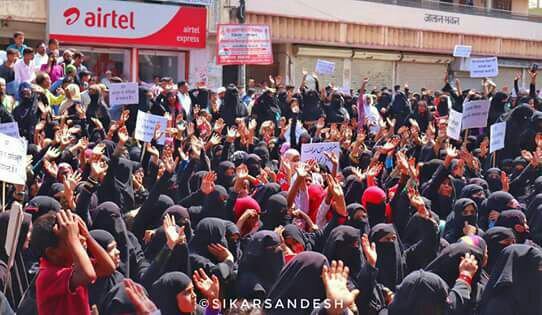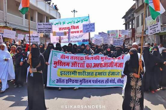 सरकार द्वारा विवादास्पद तीन तलाक बिल को लोकसभा में पास करके राज्यसभा तक लेजाकर उसको आनन फानन में पास करने की चेष्टा के खिलाफ मुस्लिम महिलाओं के हकों पर चोट पहुंचाते हुये इस्लामी शरीयत में मुदाखलत करने की मंशा को लेकर आल इण्डिया मुस्लिम पर्सनला बोर्ड के आह्वान पर सीकर की हजारों मुस्लिम महिलाओं ने सोमवार को शहर के मुख्य मार्गों से अनुशासित खामोश जुलूस निकालकर जिला प्रशासन को राष्ट्रपती व प्रधानमंत्री के नाम ज्ञापन देकर तलाक बिल को पूरी तरह वापीस लेने की पुरजोर शब्दों में भारत सरकार से मांग की गई।