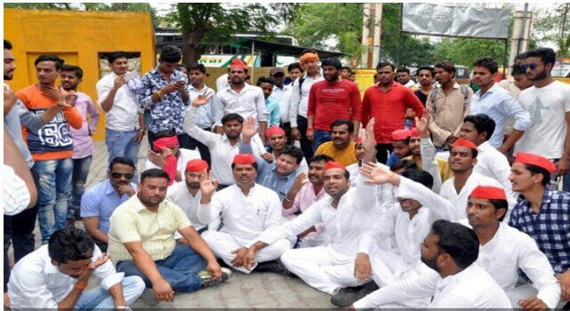 मुख्यमंत्री जी का काफिला निकलने के बाद जब पुलिस का सुरक्षा चक्र कुछ ढीला हुआ तो एक किनारे खड़े सपाई तैश में आ गए और इलाइट चौराहे पर सडक़ पर धरने पर बैठ गए और जमकर योगी के खिलाफ नारे लगाए गए। दर्जनों सपाईयों ने योगी वापस जाओ के नारे लगाए और विरोध जताया। उनका कहना था कि यह सरकार निकम्मी है। इस सरकार में विकास नहीं विनाश हो रहा है। इस अवसर पर प्रतिपाल, राहुल यादव समेत दर्जनों युवा सपाई मौजूद रहे। हंगामा होते देख नवाबाद पुलिस मौके पर आई और सभी सपाईयों को हिरासत में लेकर नवाबाद थाने पहुंच गई।