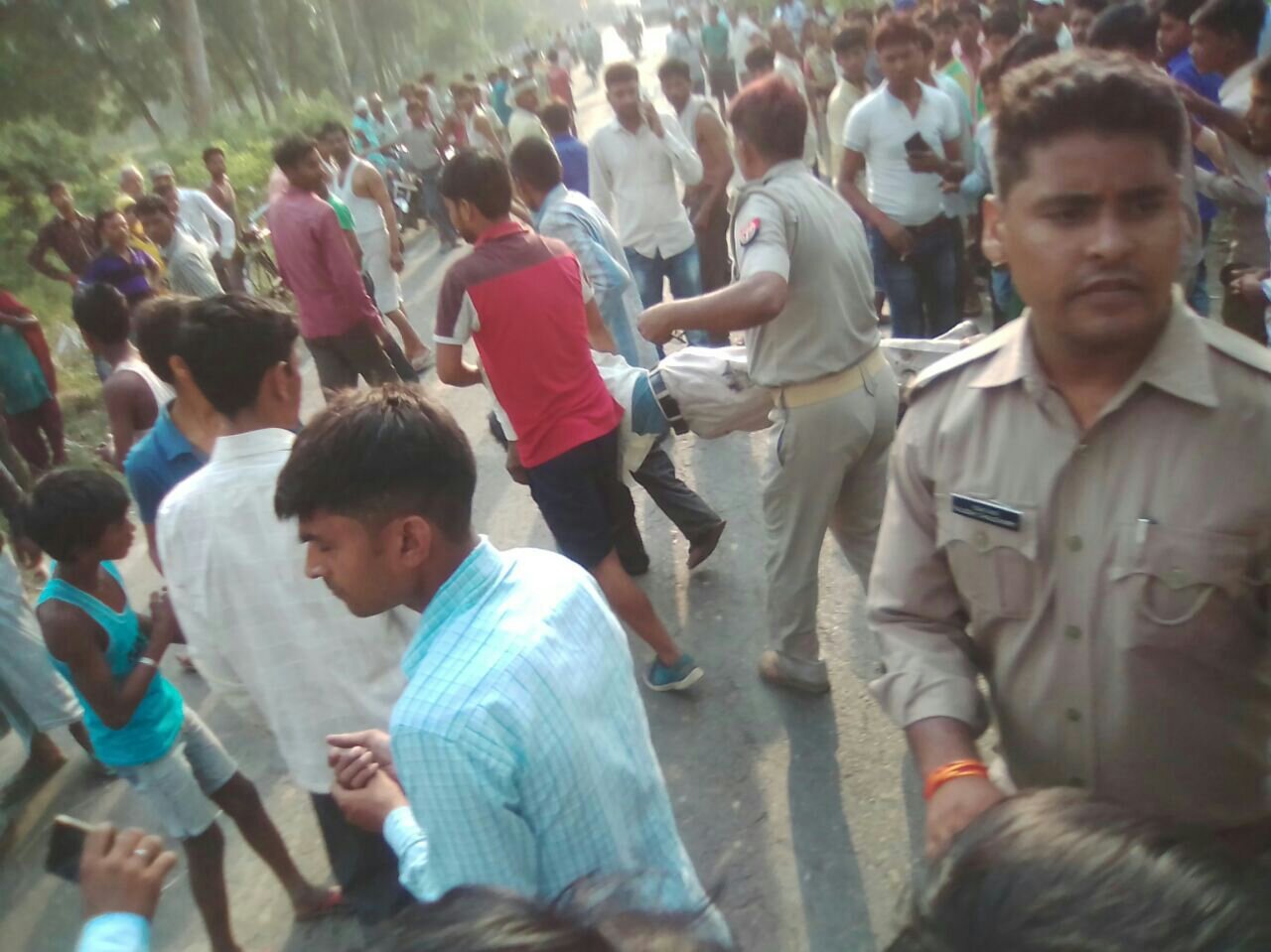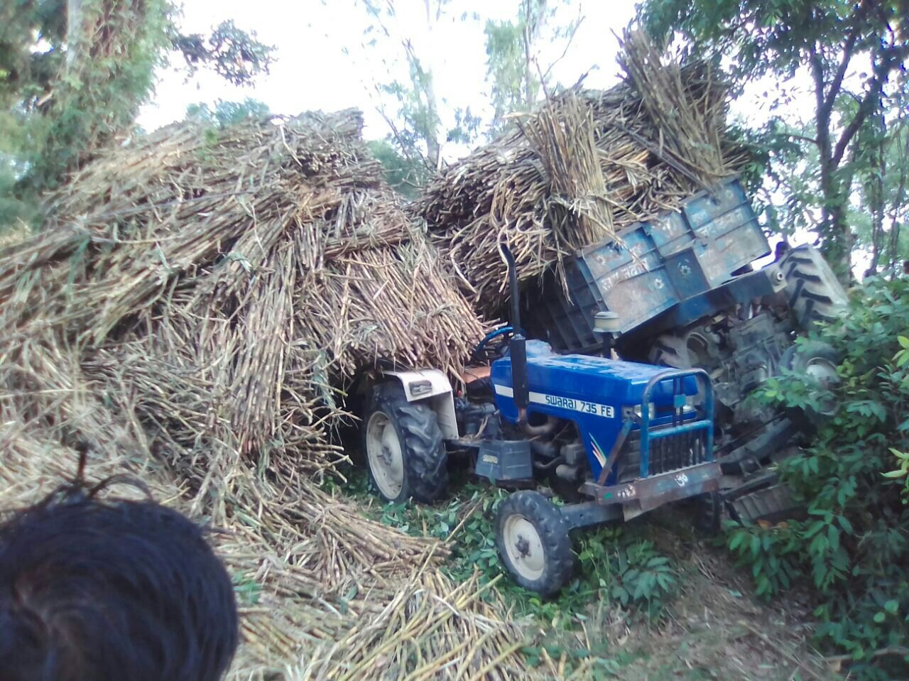 उत्तर प्रदेश के जनपद लखीमपुर खीरी के हैदराबाद थाना क्षेत्र के गोला मोहम्मदी मार्ग पर धिरावां गांव के निकट गन्ना भरी दो ट्रैक्टर व ट्रालियों के ओवर टेक करते समय ट्रालियों आपस मे भिड़ी गई जिससे एक ट्रैक्टर पलट गया जिससे उस पर सवार एक व्यक्ति की मौके पर ही दबकर मौत हो गयी जबकि ट्रैक्टर पर सवार तीन युवक गम्भीर रूप से घायल हो गये जबकि दोनों चालक जान बचाकर भाग निकले। मौके पर पहुंचे एस.ओ. सतेन्द्र कुमार सिंह ,एस. आई. मनोज कुमार व रामचन्द्र की टीम ने तत्काल विजेन्द्र खनन वालों की जेसीबी बुलाकर ट्रैक्टर के नीचे दबे व गन्ने में फंसे लोगों को मसीहा बनकर निकलवा कर अस्पताल पहुंचाया।