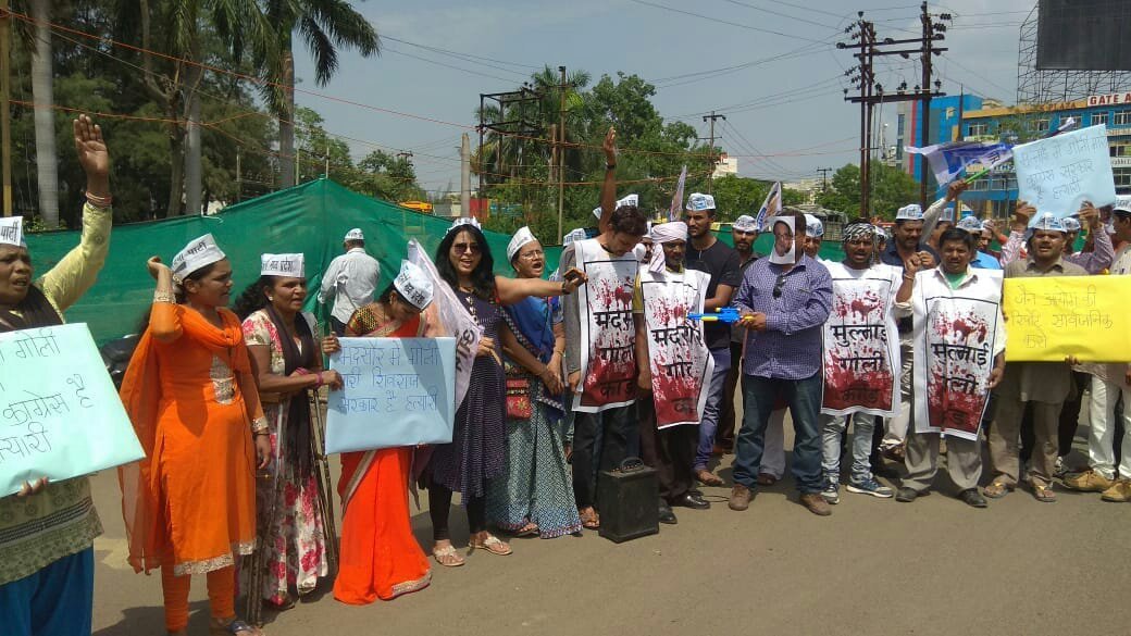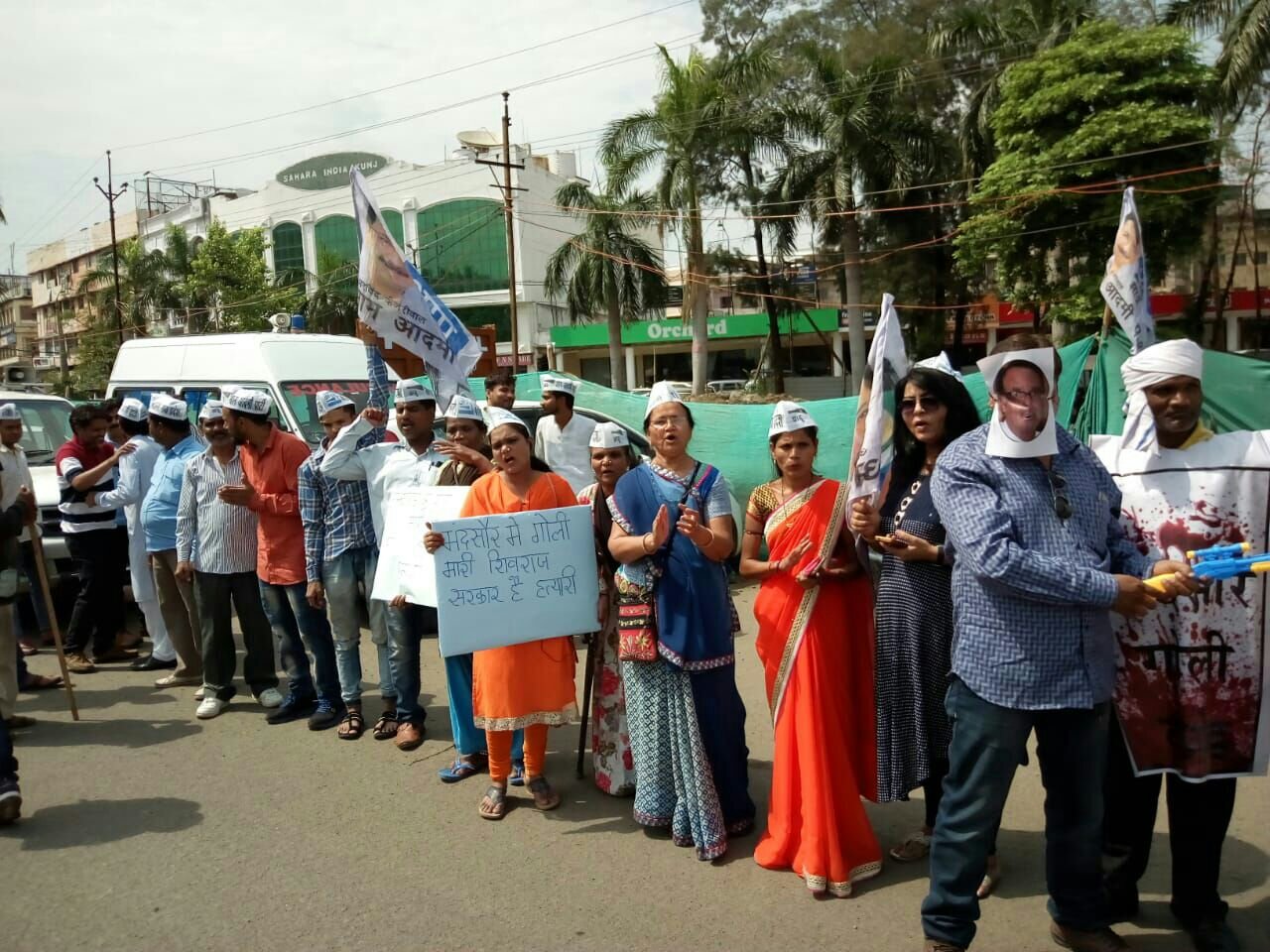 आम आदमी पार्टी ने बुधवार को भोपाल के बोर्ड ऑफिस चौराहे पर प्रदर्शन कर भाजपा और कांग्रेस के खिलाफ मोर्चा खोला। मंदसौर हिंसा पर जैन आयोग की रिपोर्ट को तुरंत सार्वजनिक करने की मांग करते हुए आम आदमी पार्टी ने कहा कि शिवराज सरकार अपने अधिकारियों को बचाने का काम कर रही है और किसानों के साथ धोखा कर रही है। इससे पहले 1998 में मुलताई गोलीकांड की रिपोर्ट में भी अफसरों को क्लीन चिट दे दी गई थी। कांग्रेस और भाजपा दोनों ही किसानों के साथ धोखा करती आई हैं। प्रदर्शन के दौरान आप कार्यकर्ताओं ने मुलताई और मंदसौर के किसानों पर बंदूक से गोली चलाते हुए दिग्विजय सिंह और शिवराज सिंह के मुखौटे लगाते हुए प्रदर्शन किया।