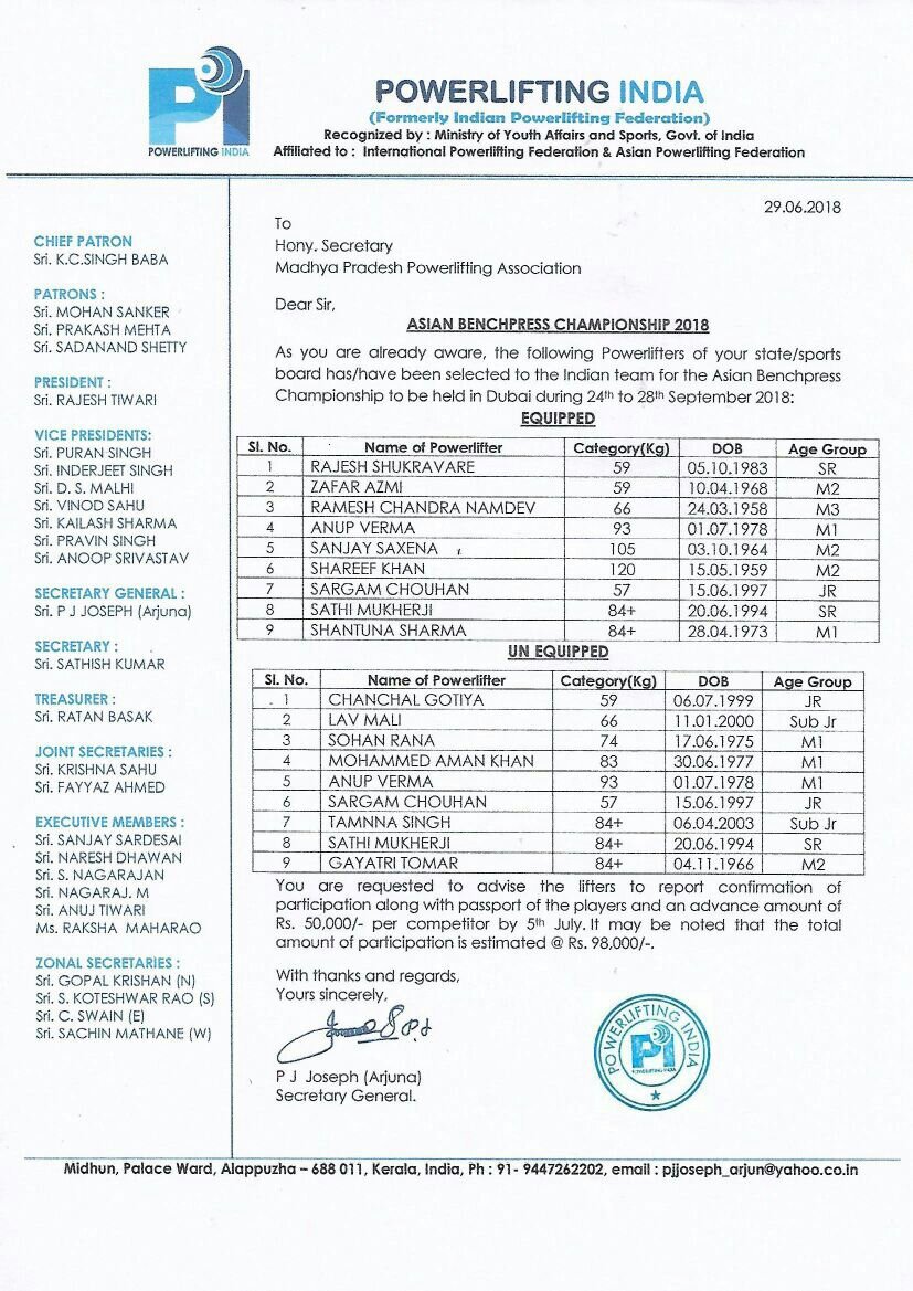 पन्ना जिले के अमानगंज नगर के मोहम्मद अमन खान का एशिया बेंच प्रेस प्रतियोगिता के लिये राष्टीय टीम में चयन किय़ा गया है। एशिया बेंच प्रस प्रतियोगिता यू .ए .ई .दुबई में सितम्बर 2018 मे आय़ोजित होगी जिसके लिए अमन खान बड़ी लगन के साथ कड़ी मेहनत कर रहे हैं।