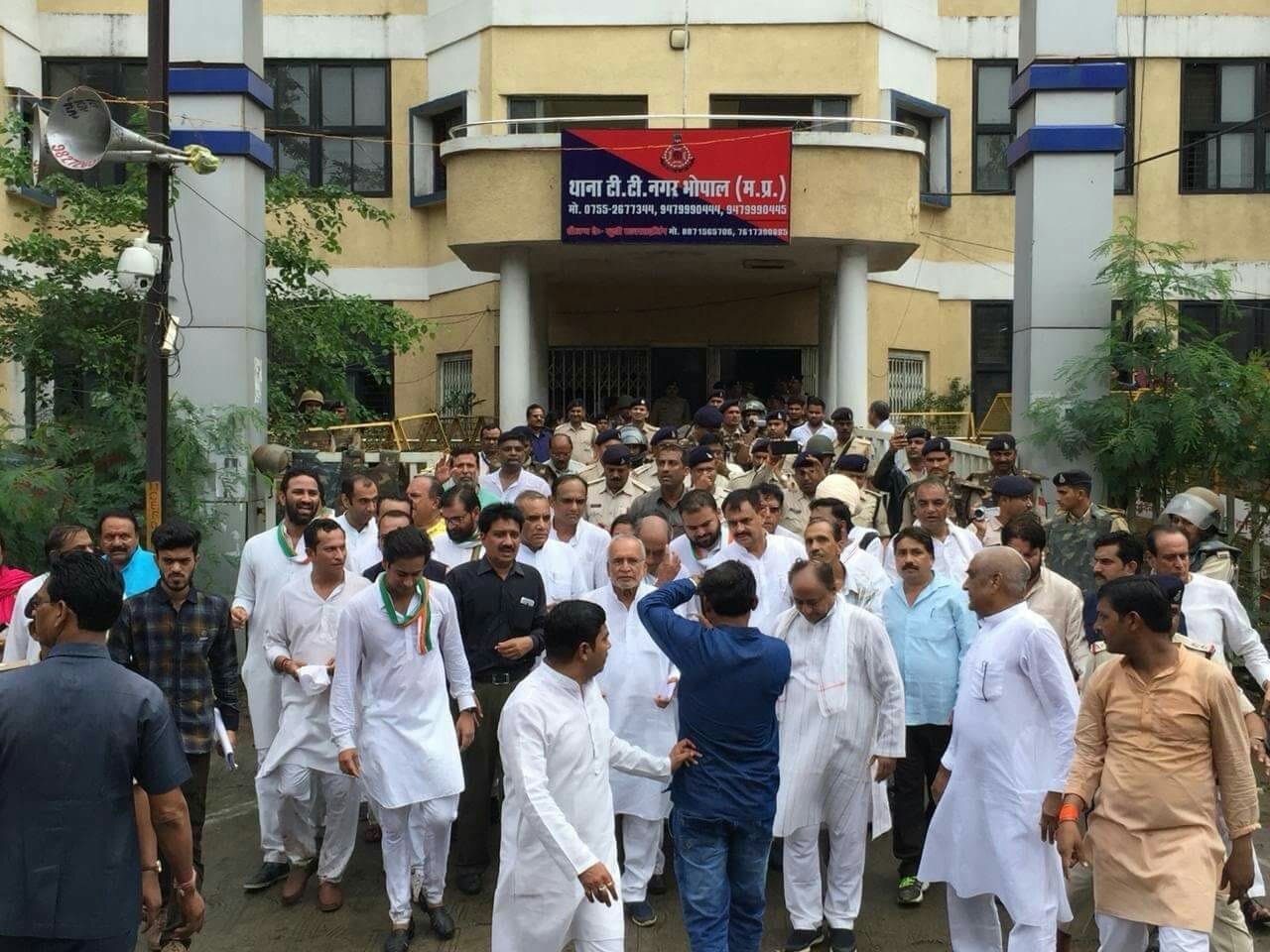 दिग्विजय सिंह अपने समर्थको और कांग्रेस कार्यकर्ताओं के साथ पीसीसी कार्यालय से 12 बजे गिरफ्तारी देने टी टी नगर थाने पहुंचे थे, लेकिन थाने के टी आई ने ये कहते हुए गिरफ्तार नहीं किया की उनके खिलाफ थाने में कोई अपराध दर्ज नहीं है। टी टी नगर टी आई ने उनको लिखित में एक तहरीर भी दी है।