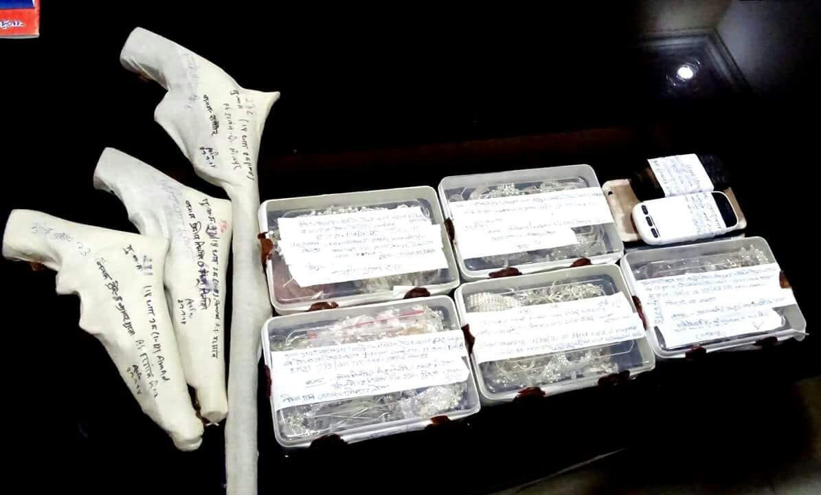 3. सुरेन्द्र गुप्ता उर्फ कक्कू पुत्र खुशीराम गुप्ता नि0ग्रा0 सरांय सैदापुर थाना फरधान लखीमपुर खीरी के पास से चांदी के जेवरात वजन 469.85 ग्राम 01 अदद तमंचा देशी 315 बोर एवं 02 अदद जिन्दा कारतूस 315 बोर बरामद हुये।