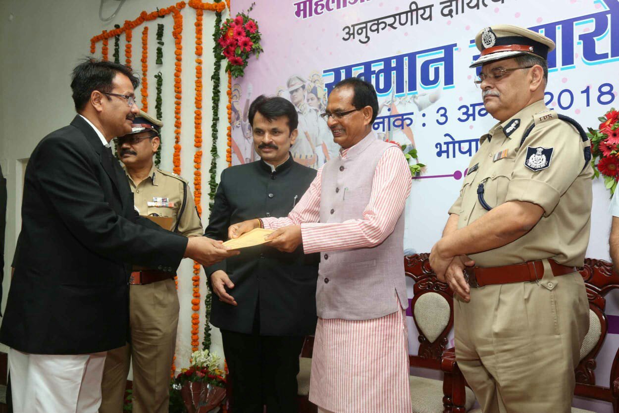 श्री चौहान ने जिला धार के पुलिस अधीक्षक श्री वीरेन्द्र कुमार सिंह, अ.अ.पु मनावर डॉ. आनंद सिंह वास्कले, वैज्ञानिक अधिकारी सुश्री पिंकी मेहरडे, एडीपीओ श्रीमती पद्मा जैन, नगर निरीक्षक श्री संजय रावत, उप निरीक्षक थाना मनावर श्री ईलापसिंह मुजाल्दे और जिला सागर के तत्कालीन अनु. अधि. खुरई श्री विक्रम सिंह, वैज्ञानिक अधिकारी एफएसएल श्री पंकज पाटीदार, एडीपीओ श्री दिनेश चंदेल, उप निरीक्षक विवेचक श्री जितेन्द्र वैष्णव। सागर के ही पुलिस अधीक्षक श्री सत्येन्द्र कुमार शुक्ल, वैज्ञानिक अधिकारी डॉ. बृजेश चौधरी, एडीपीओ श्री लोकेश दुबे, निरीक्षक थाना प्रभारी रहली श्री रामअवतार चौरहा, उप निरीक्षक श्री दशरथ प्रसाद दुबे, उप निरीक्षक श्रीमती प्रीति जैन, *शहडोल* के तत्कालीन पुलिस अधीक्षक श्री सुशांत कुमार सक्सेना, लोक अभियोजन अधिकारी श्री विश्वजीत पटेल, वैज्ञानिक अधिकारी डॉ. एस.पी. सिंह, एडीपीओ श्री एम.आर. खान निरीक्षक थाना प्रभारी श्री कमलेन्द्र सिंह कर्चुली, उप निरीक्षक थाना कोतवाली सुश्री रजनी नागभिरे, मंदसौर जिले के पुलिस अधीक्षक श्री मनोज सिंह, अतिरिक्त पुलिस अधीक्षक श्री सुंदर सिंह कनेश, नगर पुलिस अधीक्षक श्री राकेश मोहन शुक्ला, उप पुलिस अधीक्षक महिला अपराध सुश्री लक्ष्मी सेतिया, वैज्ञानिक अधिकारी डॉ. चंदना अंजना, एडीपीओ श्री नीतेश कृष्णन, निरीक्षक थाना प्रभारी पिपलिया मण्डी श्री कमलेश सिंगार, निरीक्षक थाना प्रभारी अजाक श्रीमती पुष्पा सिंह चौहान, उप निरीक्षक श्री सुरेन्द्र सिसोदिया, आरक्षक थाना कोतवाली श्री कमलपाल, दमोह जिले के पुलिस अधीक्षक श्री विवेक अग्रवाल, नगर पुलिस अधीक्षक श्री मनभरण प्रसाद प्रजापति, वरिष्ठ वैज्ञानिक अधिकारी श्रीमती किरण सिंह, उप संचालक अभियोजन श्री वीर सिंह राजपूत, निरीक्षक थाना प्रभारी कोतवाली श्री अरविंद सिंह, प्रधान आरक्षक श्री राजेन्द्र मिश्रा, आरक्षक श्री मनीष गंधर्व, आरक्षक श्री गोविंद अवस्थी को उत्कृष्ट सेवाओं के लिये सम्मानित किया।