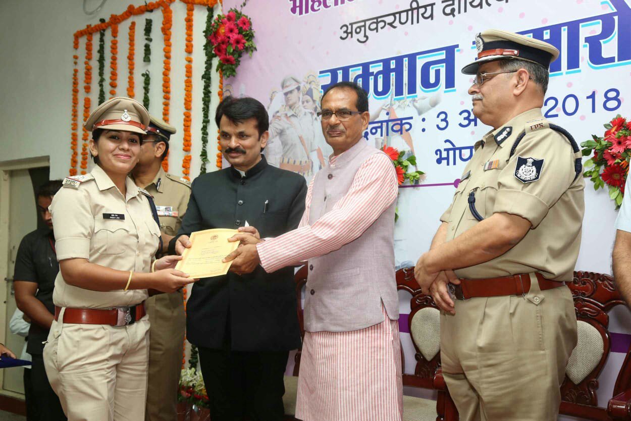 मुख्यमंत्री श्री शिवराज सिह चौहान ने महिलाओं और बेटियों के विरूद्ध जघन्य अपराधों में उत्कृष्ट विवेचना कर अपराधियों को फांसी की सजा दिलाने वाले पुलिस अधिकारियों को आज मुख्यमंत्री निवास परिसर में आयोजित समारोह में सम्मानित किया। श्री चौहान ने पुलिस अधिकारियों को उत्कृष्टता प्रमाण-पत्र प्रदान करते हुये उनकी कर्तव्यनिष्ठा की सराहना की।