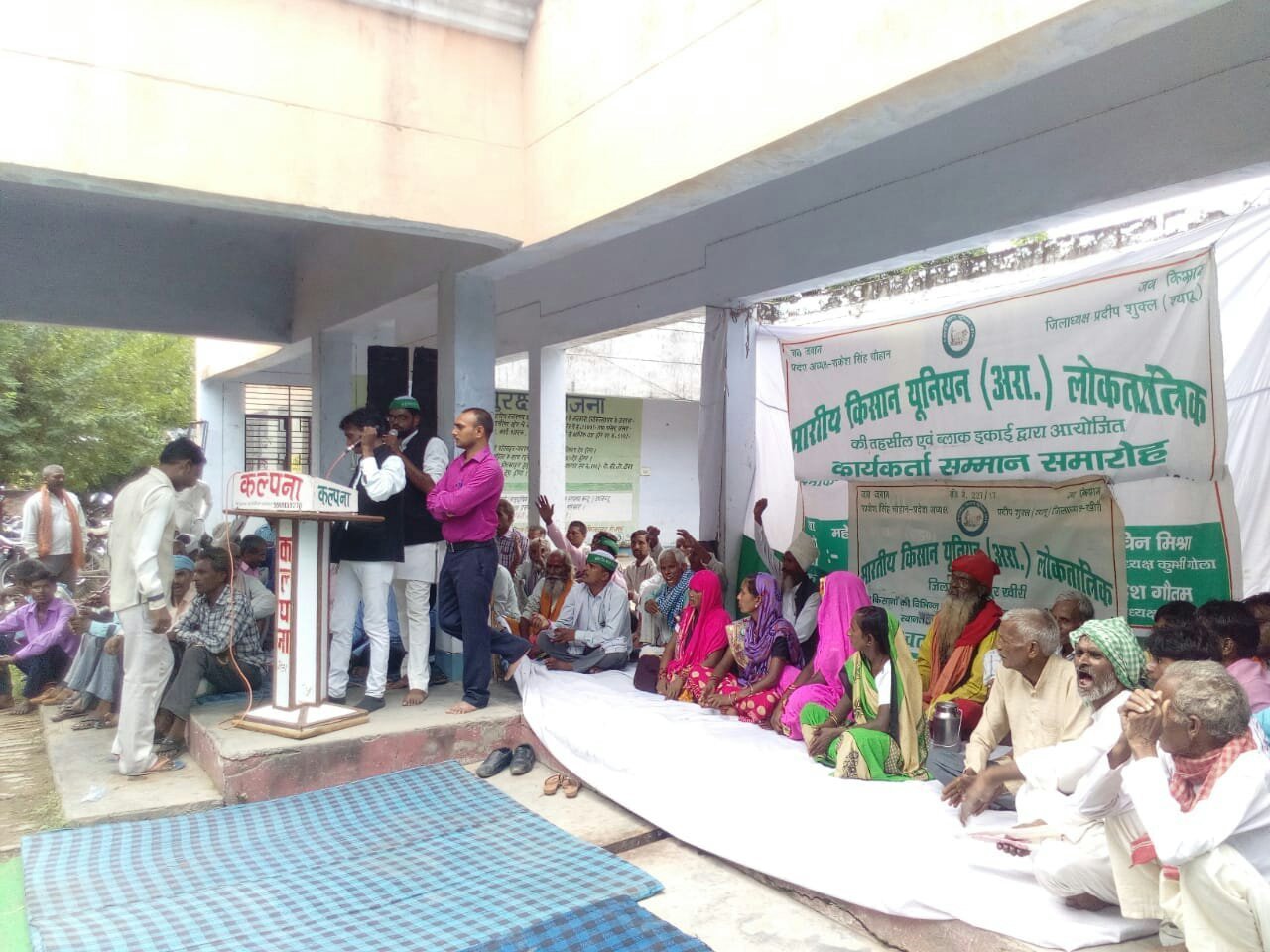 उत्तर प्रदेश के जनपद लखीमपुर खीरी की तहसील गोला गोकर्णनाथ में आज दिनांक 7 अगस्त 2018 को भारतीय किसान यूनियन लोकतांत्रिक के गोला तहसील अध्यक्ष महेश चंद्र वर्मा के नेतृत्व में तहसील परिसर गोला में राशन कार्ड, पट्टों की जमीनों का आवंटन ,विधवा, वृद्धावस्था, विकलांग पेंशन, नरेगा जॉब कार्ड धारकों को काम न दिया जाने एवं बकाया भुगतान , आबादी की जमीनों के आवंटन,गन्ना भुगतान ,आवारा पशुओं से निजात दिलाए जाने, एवं बिजली विभाग द्वारा तमाम मुआवजे न दिए जाने ,सहित क्षेत्र के किसानों की विभिन्न समस्याओं को लेकर एक विशाल किसान पंचायत का आयोजन किया गया है।