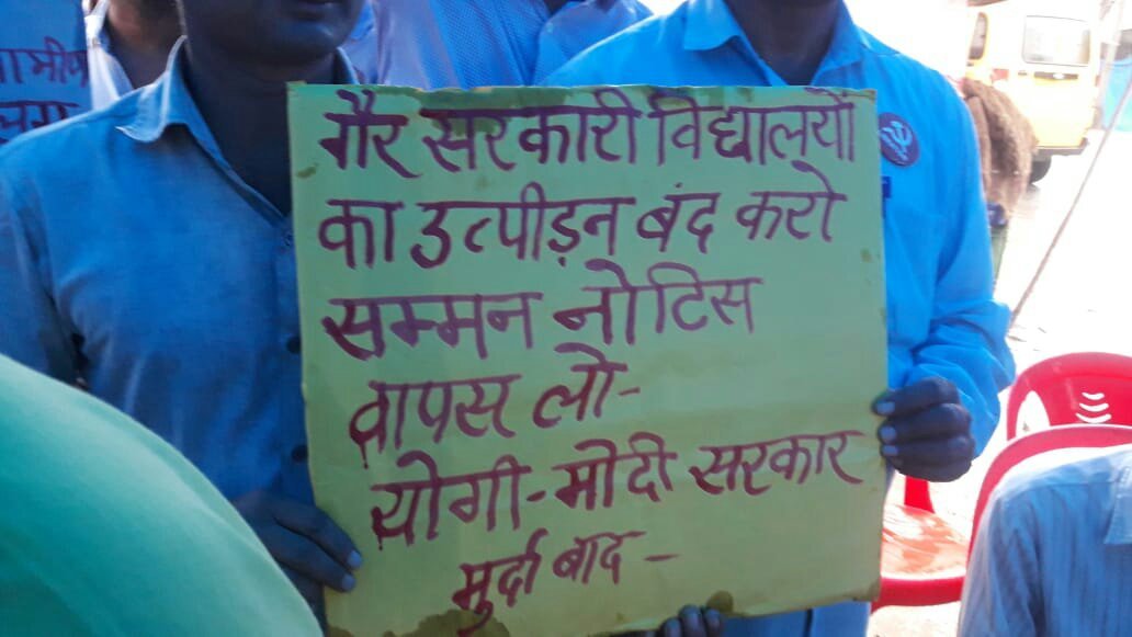 संघ के अध्यक्ष डॉ कमरुज्जमा ने कहा की सरकार ने गैर सरकारी विद्यालयों को बंद करने का आदेश देकर शिक्षित बेरोजगारों से रोजगार छीनने के साथ-साथ शिक्षा व्यवस्था पर कुठाराघात किया है। प्रधानाध्यापक राम नरेश शुक्ला आचार्य ने कहा कि हम लोगों को भाजपा सरकार से यह उम्मीद कतई नहीं थी कि वह हम लोगों से वोट लेकर हमें बेरोजगार कर हमारे ही पेट पर लात मारेगी और हमारे सम्मान पर कुठाराघात करेगी। ​गैर मान्यता प्राप्त व गैर सरकारी विद्यालय संघ के अध्यक्ष डॉ कमरुज्जमा ने सैकड़ों शिक्षकों के साथ सरकार की जनविरोधी फरमान के विरुद्ध धरना प्रदर्शन कर बीआरसी कार्यालय का किया घेराव | New India Timesन्यू श्री जीनियस स्कूल के प्रबंधक हेमेंद्र सिंह हेमू ने कहा कि भाजपा सरकार रोजगार तो नहीं दे पा रही है और जो पढ़े लिखे नौजवान दो- चार रुपए का अर्जन कर सम्मानजनक जीवन यापन कर रहे थे उसे भी भाजपा सरकार छीन रही है, सरकार की जन विरोधी फरमान का हम सब संगठित होकर करारा जवाब देंगे तथा अन्याय को किसी भी दशा में बर्दाश्त नहीं करेंगे। डॉ भीमराव अंबेडकर विद्यालय के प्रबंधक कामरेड अर्जुनलाल ने कहा कि गैर मान्यता प्राप्त विद्यालय तब तक बंद नहीं होंगे जब तक माननीय न्यायालय के आदेश कि IAS, IPS एवं सभी सरकारी अधिकारियों व कर्मचारियों के बच्चों का प्रवेश सरकारी विद्यालयों परिषदीय विद्यालयों में सरकार सुनिश्चित नहीं करा देती, तब तक गैर मान्यता प्राप्त विद्यालय बंद नहीं होंगे।