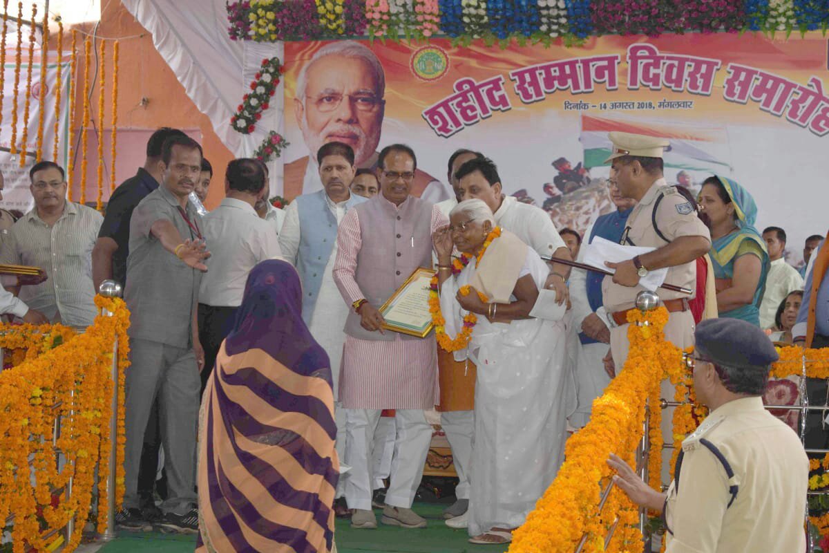मध्य प्रदेश के मुख्यमंत्री शिवराज सिंह चौहान ने भिण्ड में शहीद सम्मान दिवस समारोह में घोषणा की कि शहीदों को राज्य शासन द्वारा दी जाने वाली 1 करोड़ रूपये की सम्मान निधि में से 60 प्रतिशत राशि शहीद के वैधानिक वारिस और 40 प्रतिशत राशि शहीद के माता-पिता को दी जायेगी ताकि वे सम्मान पूर्वक जीवन जी सकें। इसी के साथ, शहीदों के माता-पिता को जीवन-यापन के लिए मध्यप्रदेश शासन द्वारा 5 हजार रुपये प्रति माह की पेंशन भी दी जायेगी साथ ही शहीद के वारिस को नौकरी, फ्लैट अथवा आवासीय प्लॉट दिया जायेगा।