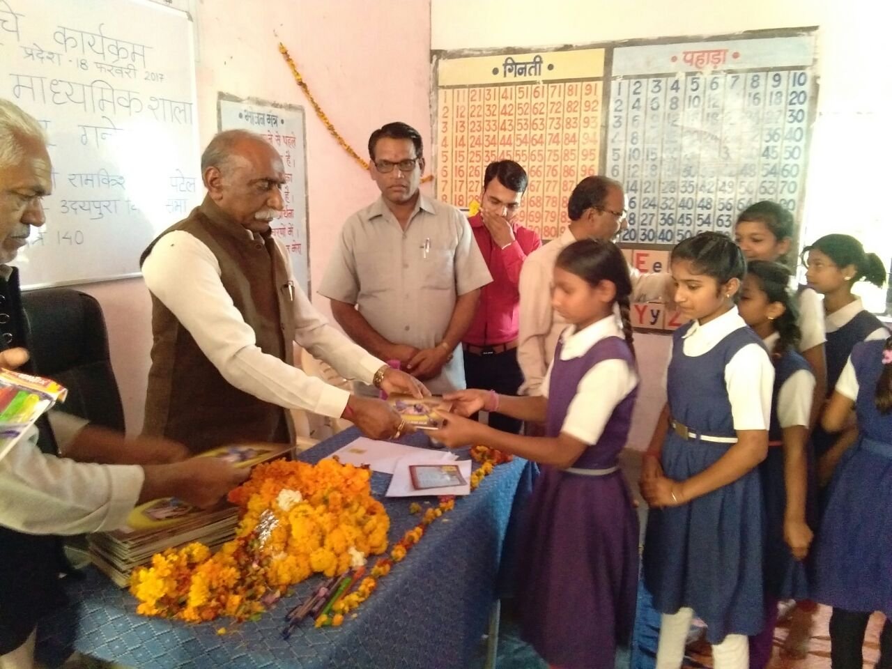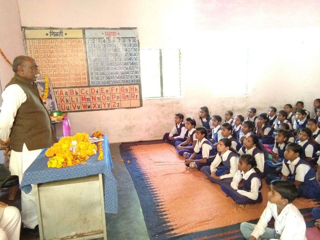 वन मंत्री डॉ शेजवार ने बच्चों को देश के बारे में बताते हुए कहा कि देश गांव, शहर, विकासखण्ड मिलकर जिला बनते हैं और कई जिले मिलकर प्रदेश बनता है और कई प्रदेश मिलकर देश बनता है। उन्होंने सभी बच्चों से कहा कि देश सभी देशवासियों के लिए वंदनीय और मातृ तुल्य होता है। उन्होंने बच्चों को प्रेरक कविता ‘‘देश हमें देता है सब कुछ, हम भी तो कुछ देना सीखे… सूरज हमें रोशनी देता, हवा नया जीवन देती है…..‘‘ सुनाई। उन्होंने बच्चों को नैतिक शिक्षा का पाठ पढ़ाते हुए कहा कि हमें हमेशा दूसरों की सहायता करनी चाहिए।  ​मिल-बांचे मध्यप्रदेश अभियान:   देश हमें देता है सब कुछ, हम भी तो कुछ देना सीखें, मातृ भूमि के प्रति आदर और सम्मान हो- वन मंत्री;   जिले में जन प्रतिनिधियों सहित 3419 वालेंटियर्स ने पढ़ाया बच्चों को | New India Timesमिल-बांचे मध्यप्रदेश कार्यक्रम के अंतर्गत लोक निर्माण मंत्री श्री रामपाल सिंह ने बेगमगंज तहसील के ग्राम सुनवाहा में कक्षा आठवीं के छात्रों को पढ़ाया और उनसे सामान्य ज्ञान के प्रश्न भी पूछे। लोक निर्माण मंत्री श्री सिंह ने बच्चों से कहा कि केवल पढ़ने के लिए पढ़ाई न करें बल्कि कुछ बनने के लिए पढ़े। उन्होंने कहा कि वे अभी से अपना लक्ष्य निर्धारित करें और उसे पाने के लिए कठिन परिश्रम करें। उन्होंने कहा कि परिश्रम किया जाए तो विषम परिस्थितियां भी आगे बढ़ने से नहीं रोक पाती। उन्होंने कक्षा के बच्चों से पूछा कि वे क्या बनना चाहते हैं तो अनेक बच्चों ने शिक्षक बनने की बात कही।