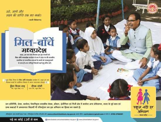 मिल-बांचे मध्यप्रदेश अभियान:   देश हमें देता है सब कुछ, हम भी तो कुछ देना सीखें, मातृ भूमि के प्रति आदर और सम्मान हो- वन मंत्री;   जिले में जन प्रतिनिधियों सहित 3419 वालेंटियर्स ने पढ़ाया बच्चों को | New India Times जिले की 1856 प्राथमिक एंव 656 माध्यमिक शालाओं में मिल-बांचे मध्यप्रदेश कार्यक्रम आयोजित किया गया। जिसमें बाड़ी विकासखण्ड में 404 शालाओं में, बेगमगंज विकासखण्ड में 300 शालाओं में, गैरतगंज विकासखण्ड में 283 शालाओं में, औबेदुल्लागंज विकासखण्ड में 404 शालाओं में, सांची विकासखण्ड में 442 शालाओं में, सिलवानी विकासखण्ड में 380 शालाओं में तथा उदयपुरा विकासखण्ड में 399 शालाओं में मिल-बांचे मध्यप्रदेश कार्यक्रम आयोजित किया गया।