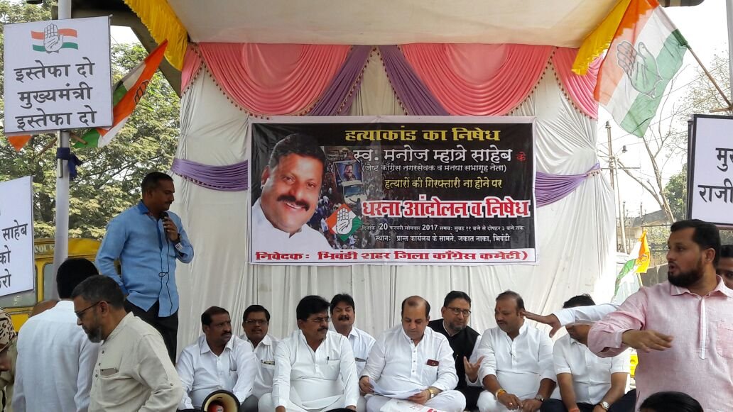 नागरिकों की सुरक्षा के अहम मुद्दे पर भाजपा की देवेंद्र फड़णवीस सरकार को पूर्णतया असफल करार देते हुए कांग्रेस जिलाध्यक्ष शोएब  गुड्डू ने कहा कि, मुख्यमंत्री फड़णवीस राज्य के मुखिया होने के साथ ही गृह मंत्रालय का विभाग भी संभाले हुए हैं, इसलिए नागरिकों व जन प्रतिनिधियों की सुरक्षा की अहम जिम्मेदारी से वह बच नहीं सकते हैं। सभागृह नेता कांग्रेसी नगरसेवक मनोज म्हात्रे की हत्या भाजपा पदाधिकारी द्वारा अंजाम दी गई है, जिसे सरकार बचाने की कोशिशों में जुटी है। वह भिवंडी शहर जिला कांग्रेस कमेटी द्वारा आयोजित स्व.मनोज म्हात्रे हत्याकांड का निषेध व हत्यारों की गिरफ्तारी की मांग हेतु किये जा रहे धरना आंदोलन को संबोधित कर रहे थे। कांग्रेसी धरना-आंदोलन को अन्य कांग्रेस नेताओं द्वारा भी संबोधित कर देवेंद्र फडणवीस से इस्तीफे की मांग की गई। उक्त मौके पर पूर्व सांसद सुरेश टावरे, प्रदेश कांग्रेस महासचिव तारिक फारुकी, पूर्व विधायक योगेश पाटिल, वरिष्ठ कांग्रेस नेता प्रदीप पप्पू राकां, फाजिल अंसारी, मनपा गट नेता जावेद दलवी, उप महापौर अहमद हुसेन सिद्दीकी,  हबीबुर्रहमान अंसारी, रिजवान अहमद, मधुकर जगताप, कुमार फडतरे, महिला जिलाध्यक्षा रेहाना अंसारी, वरिष्ठ महिला नेता रानी अग्रवाल, रशीद ताहिर मोमिन, स्थायी समिति सभापति  इमरान खान, मुन्ना अशरफ, इस्माइल मिर्ची, मतलूब सरदार, सुरेश भगत, असरार सिद्दीकी, परवेज मोमिन, नगरसेविका कविता भोईर, दीन मो.खान, उमेश भोईर, ताज खान, शाहिद मोमिन, अनंता पाटिल, नफीस अंसारी, तारिक गुड्डू  सहित कांग्रेसी पदाधिकारी व भारी संख्यां में महिलाएं प्रांत कार्यालय के सामने धरना स्थल पर मौजूद थीं। संचालन इकबाल सिद्दीकी ने किया। ​मुख्यमन्त्री दें इस्तीफा: शोएब गुड्डू;मनोज म्हात्रे हत्याकांड को लेकर प्रान्त कार्यालय के सामने धरना; क्राइम ब्रांच ठाणे करेगी म्हात्रे हत्याकांड की जांच: परमवीर सिंह    | New India Timesगौरतलब हो कि, भिवंडी शहर जिला कांग्रेस द्वारा जिलाध्यक्ष शोएब गुड्डू की अगुवाई में नगरसेवक सभागृह नेता मनोज अनंत म्हात्रे की नृशंस हत्या के विरोध व हत्यारों की अविलंब गिरफ्तारी की मांग को लेकर प्रांत कार्यालय के सामने कांग्रेसी पदाधिकारियों, कार्यकर्ताओं व महिला कार्यकर्ताओं की विशाल संख्या के साथ सुबह 11 बजे से दोपहर 3 बजे तक धरना-प्रदर्शन किया गया। तत्पश्चात कांग्रेसी प्रतिनिधिमंडल द्वारा प्रांत अधिकारी को ज्ञापन सौंपा गया। कांग्रेसी  प्रतिनिधिमंडल द्वारा प्रांत अधिकारी डॉ संतोष थिटे को सौंपे ज्ञापन में, मनपा सभागृह नेता मनोज म्हात्रे हत्याकांड की जांच सीबीआई से कराए जाए, हत्या आरोपियों की तुरंत गिरफ्तारी, म्हात्रे परिवार की सुरक्षा पुख्ता किये जाने व