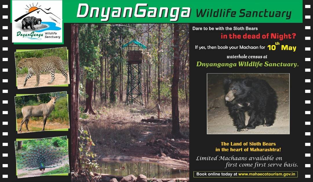 ज्ञानगंगा अभयारण्य में मौजूद हिंस्त्र प्राणियों में सब से ज़्यादा संख्या में भालू (स्लॉथ बिअर) पाए जाते है इसी लिए ज्ञानगंगा अभयारण्य भालुओं के लिए मशहूर है.इस साल 10 मई को बुद्ध पूर्णिमा की रात में होने जा रही प्राणी गणना के लिए पुरे अभयारण्य में कुत्रिम जलाशयों के पास 30 मचानों की व्यवस्था की गई है जिनमे से 18 मचाने बुलढाणा रेंज में और 12 मचाने खामगांव रेंज में है। विगत वर्ष तक इस गणना में शामिल होने के लिए इच्छुक वन्यजीव प्रेमी बुलढाणा या खामगांव के वन्यजीव विभाग में अपना नाम दर्ज करवाते थे और इन्ही लोगो को अभयारण्य में जाने दिया जाता था किन्तु आधुनिकता के दौर को देखते हुए इस साल से इस प्रणाली में वन्यजीव विभाग ने बदलाव किया है.अब यदि आपको बुद्ध पूर्णिमा की चमकती रात में वन्यजीवों का दीदार करते हुए निसर्ग का आनंद लेना है तो अब आपको वन्यजीव विभाग की अधिकृत वेबसाइट www.mahaecotourism.gov.in पर जा कर अपना नाम पंजीकरण करना होगा तथा आपको निर्धारित फीस भी अदा करना होगी तभी आप अभयारण्य में प्रवेश कर सकते है.तो फिर अब देर किस बात की, बुद्ध पूर्णिमा की हसीन रात में कुदरत के हसीन पलों को अपनी आँखों और यादों में कैद करने के लिए जल्दी से अपनी मचान बुक कीजिये क्यूंकि ज्ञानगंगा अभयारण्य में भालू आपका इंतज़ार कर रहे है।