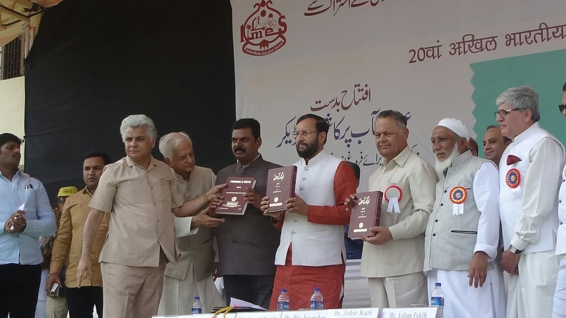 इस अवसर पर दिन के साढ़े ग्यारह बजे मेला ग्राउंड में एक बड़े मंच पर शहर के गणमान्य व्यक्तियों सहित उर्दू भाषा और इसके विकास के लिए लगातार संघर्ष करने वाले संगठनों, विबिन्न विद्यालयों के ज़िम्मेदारों और राजनीतिक और सामाजिक हस्तियों मौजूद थीं। इस अवसर पर श्री जावड़ेकर ने कहा कि कोई समाज शिक्षा के बिना विकास नहीं कर सकता, यदि समाज का विकास होगा तो देश भी प्रगति करेगा। उन्होंने उर्दू भाषा और उसकी मिठास का जिक्र करते हुए कहा कि मुसलमानों में शिक्षा प्रति जागरूकता की सख्त जरूरत है .क्यों कि किसी भी समाज या देश की उन्नति का तात्पर्य होता है कि देश के सभी वर्गों, सभी धर्मों और सभी राज्यों की जनता का पूर्ण विकास हो। .मुझे संतोष है कि हमारे महाराष्ट्र सहित दक्षिण के कई राज्यों में मुसलमानों की शैक्षिक ग्राफ संतोषजनक है. लेकिन अभी भी उत्तर प्रदेश, बिहार, बंगाल, असम जैसे कई राज्यों में मुसलमानों की शैक्षिक और आर्थिक स्थिति बेहद चिंताजनक है। जिस पर हमारी सरकार और हमारे प्रधानमंत्री बतौर विशेष विचार कर रहे हैं, और बहुत जल्द एक मजबूत शैक्षिक संरचना हम पेश करने वाले हैं जिससे तमाम सरकारी स्कूलों के बच्चे, उच्च शिक्षा के मदरसों को मनचाही शिक्षा मिल पायेगी। । माननीय मंत्री जी ने राष्ट्रिय उर्दू भाषा विकास परिषद के दो वर्षों पर आधारित क्रिया कलापों की विस्तार से चर्चा करते हुए उसके प्रदर्शन की प्रशंसा की और कहा कि मुझे व्यक्तिगत रूप से उर्दू सीखने का अरमान है और बहुत जल्दी में इस भाषा को सीख कर आप के बीच आना चाहता हूँ उन्होंने शैक्षिक वातावरण बनाने के लिए सार्वजनिक पहल को बेहद महत्वपूर्ण करार दिया .सब को शिक्षा और अच्छी शिक्षा के नारे को बार बार दोहराने और पूरे देश की शिक्षा प्रणाली में इसे प्रवेश करके लागू कर ने के लिए अपने दृढ निश्चय व्यक्त भी किया।