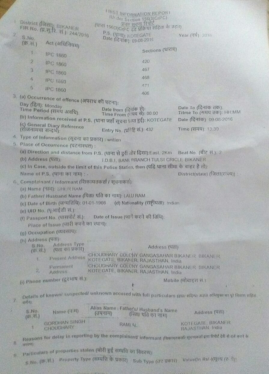 गोदारा ने बताया की शेरा राम जाट चौधरी कॉलोनी निवासी एक गरीब इंसान है और वो हेल्पेज इंडिया नाम के एन जी ओ में काम करता था, और उसका पी एफ और जो भी बकाया राशी थी, उस बकाया राशि को गोरधन चौधरी ने एक दो लोगों के साथ मिलकर शेरा राम (अनपढ़) से खाली चेकों पर साइन करवाकर उठा लिया और शेरा राम द्वारा अपने पैसे मांगने पर मार पीट की और एक फर्जी मुकदमा पुलिस से सांठ गांठ कर कोटगेट थाने में धारा 382 के तहत दर्ज करवा दिया। अब लगातार पुलिस शेराराम और उसके परिवार को प्रताड़ित कर रही है। शेराराम द्वारा दर्ज मुकदमा 9-8-16 (244/2016) धारा 420,467,468,471,406 की जांच नहीं कर एक गरीब के साथ अन्याय कर रही है, जबकी शेरा राम द्वारा आरोपियों के खिलाफ पूरे सबूत पुलिस को उपलब्ध करवाने के बाद भी पुलिस आरोपी की राजनैतिक पहुंच के कारण एक गरीब के साथ अन्याय कर रही है।​शेराराम के साथ हुए अन्याय की निष्पक्ष जांच नहीं हुई तो करेंगे आन्दोलन: जयवीर गोदारा | New India Timesगोदारा ने गृहमंत्री से मांग करते कहा की पूरे प्रकरण की निष्पक्ष जांच करवाकर शेराराम को न्याय दिलाया जाये नहीं तो मरू प्रदेश निर्माण मोर्चा आन्दोलन करेगा। वहीं शेरा राम जाट की पत्नी सुमित्रा देवी ने कहा अगर हमारे साथ न्याय नहीं हुआ तो में पुलिस अधीक्षक कार्यालय के आगे आमरण अनशन पर बैठ जाऊंगी क्योंकि बार बार पुलिस हमें परेशान कर रही है।