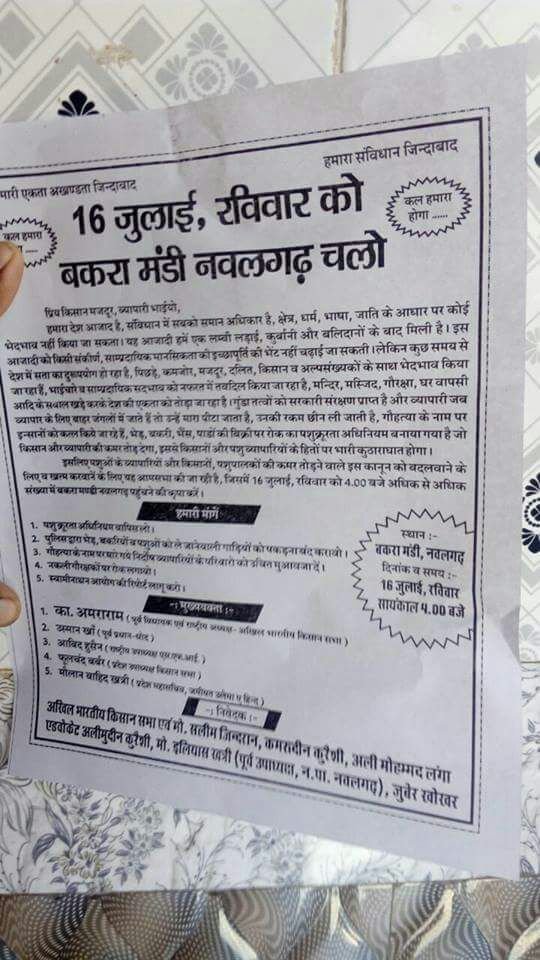 सालों से पशूक्रूरता के नाम पर पीडित होने वाले सीकर बकरामंडी से तालूक रखने वाले पशु कारोबारियों पर इसी जून माह में मुसीबतों का पहाड़ सा टूट पड़ा। एक तरफ कोटपुतली इलाके में उनके साथ करीब 86 लाख की लूट हो गई तो दुसरी तरफ नागोर जिले की सीमा में इन्हीं सीकर बकरामण्डी के व्यापारियों के साथ लूट व माजिद नामक युवक की हत्या होने से मानो यह पूरी तरह टूट चुकने के बाद अचानक अमराराम का साथ क्या मिला कि इनकी मांग धरापल पर आकर हल होने लगी। पहले शहीद माजिद के हत्यारे गिरफ्तार हुये तो फिर कोटपुतली लूट का खुलासा होकर कुछ लूटेरे गिरफ्तार व रकम बरामद हुई है।​सीकर में किसानों-मजदूरों के साथ पशु कारोबारी भी कामरेड अमराराम की आवाज पर लब्बैक कहने लगे | New India Timesसीकर कृषि उपज मंडी में 14-जून को सीकर बकरामंडी के पशु कारोबारियों ने किसान सम्मेलन में बडी तादात में शिरकत करके अमराराम की अगुवाई में साझा लड़ाई लड़ने का तय करके जो कदम बढाये हैं उनमें एक एक करके सफलता मिलने लगी है। इन लोगों ने पहले कुचामन में विशाल साझा मीटिंग करके प्रशासन को झुकाया फिर लोसल बकरा मंडी में मीटिंग करके फिर सरकार को चेताया है एवं अब 17-जून को सीकर बकरामंडी परीसर को शहीद माजिद नगर का नाम देकर वहाँ विशाल साझा सभा करके सरकार को ललकारेंगे। इससे पहले 16-जुलाई को झुंझूनु जिले के नवलगढ कस्बे की बकरामंडी में भी इसी तरह की सभा हो रही है।