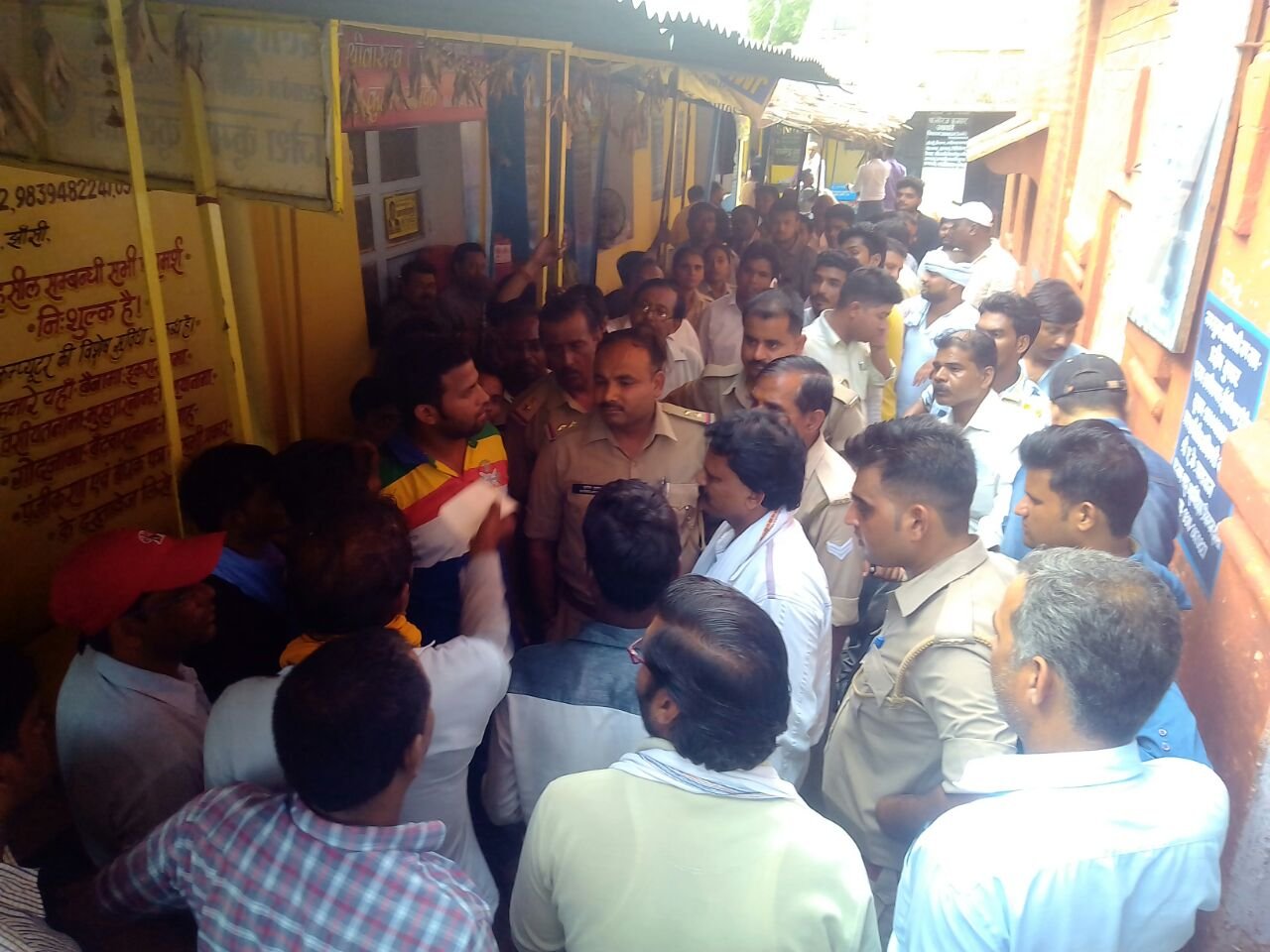 झॉसी तहसील कार्यलय में उस समय हड़कम मच गया जब एक दंपति को कुछ लोगों ने पकड़ लिया और अपने अपने उधार रूपये क मांग करने लगे। इस दौरान कुछ लोगों ने डायल 100 को सूचना दे दी। सूचना मिलते ही तत्काल थाना नवाबाद पुलिस झॉसी तहसील कार्यलय पहुंच गई और सभी को थाना नवाबाद ले आई।